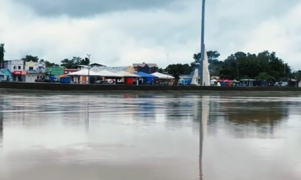 O nível do Rio Acre passou dos 11 metros na manhã deste domingo, 21. A marca (11,07m) representa o que a Defesa Civil chama de cota...