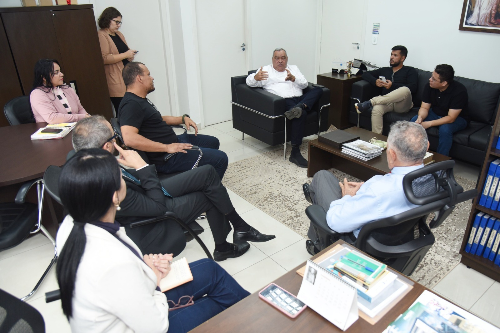 Esses e outros assuntos foram debatidos na reunião que também contou com a participação de juízas e juízes Andréa Brito, Robson Aleixo e Hugo Torquato, assim como, do diretor do Iapen Marcos Frank, o empresário Mazinho Serafim e servidoras e servidores públicos das instituições.