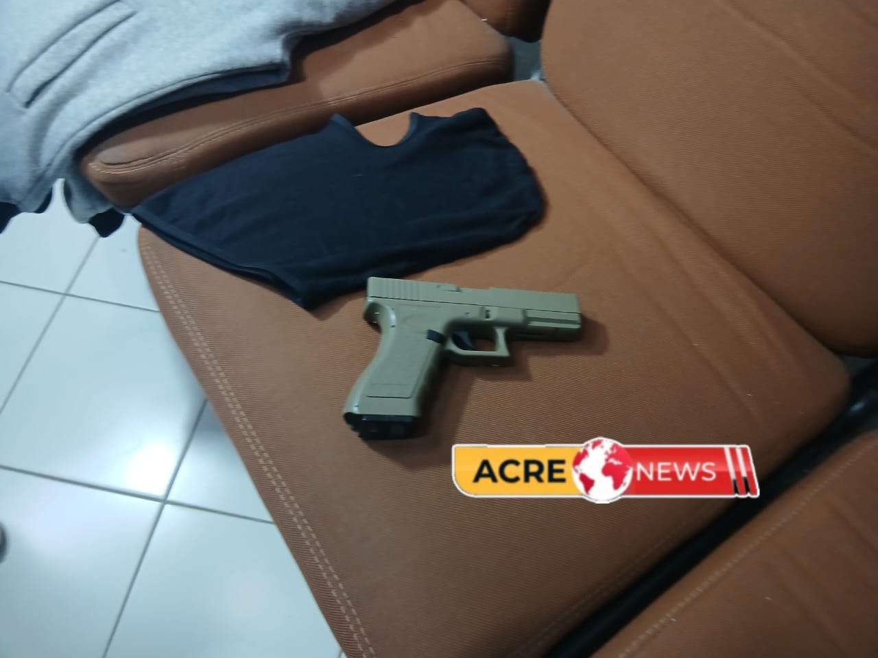 Na fuga, um dos bandidos deixou cair um simulacro de arma de fogo.
