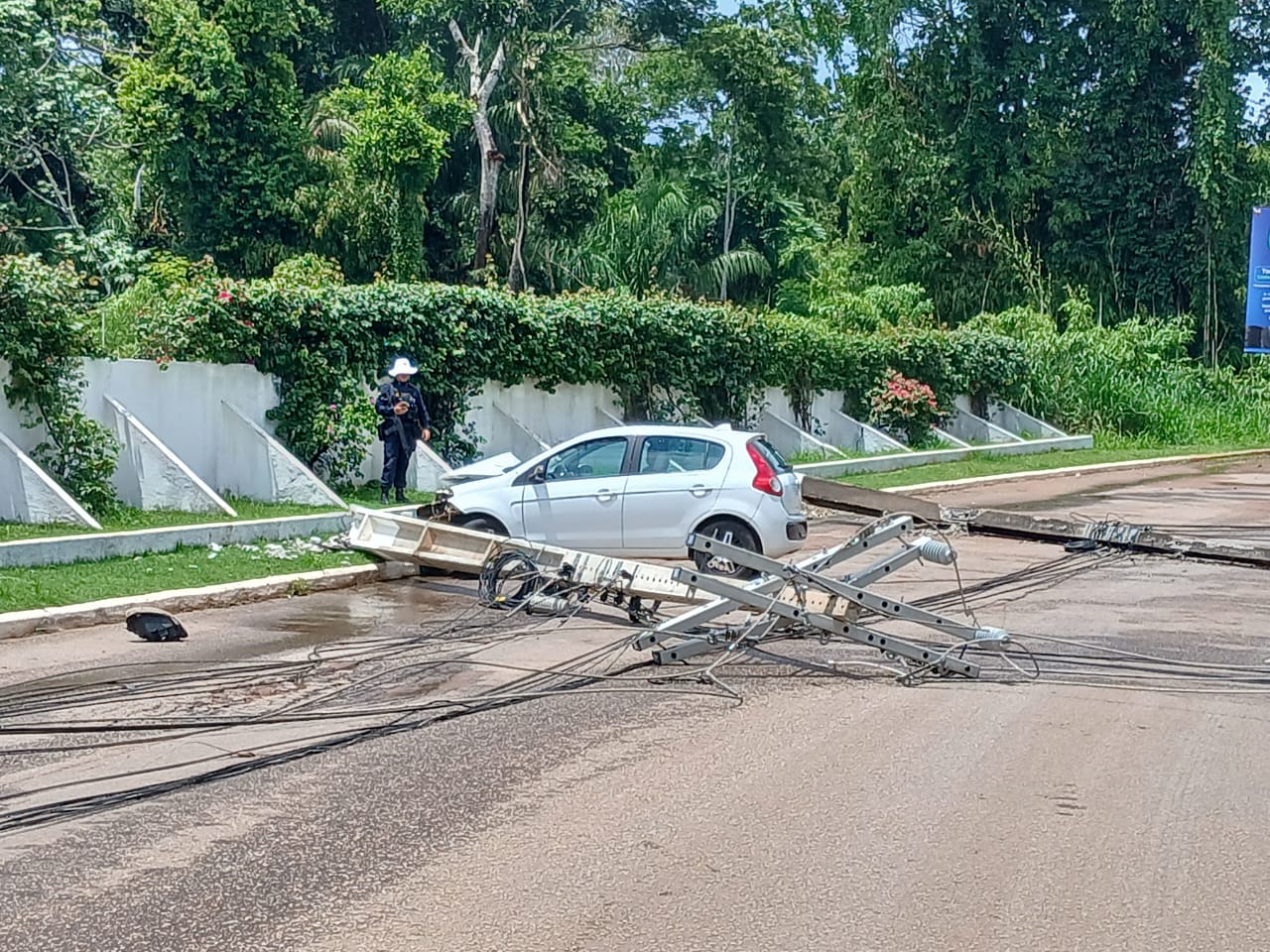 Acidente grave Carro desgovernado derruba dois postes na Estrada do Calafate