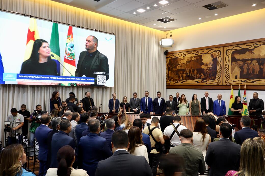 A Assembleia Legislativa do Acre (Aleac) realizou, neste sábado, 1° de fevereiro, a cerimônia de posse da nova Mesa Diretora para o biênio 2025/2026, durante a primeira sessão solene da 3ª Sessão Legislativa da 16ª Legislatura. O evento marca uma nova fase no Legislativo estadual e, pela primeira vez, a posse foi realizada no dia 1º de fevereiro, conforme estabelece o artigo 48, §5º, da Constituição Estadual, alterando a tradicional prática de posse automática que ocorria logo após a eleição.