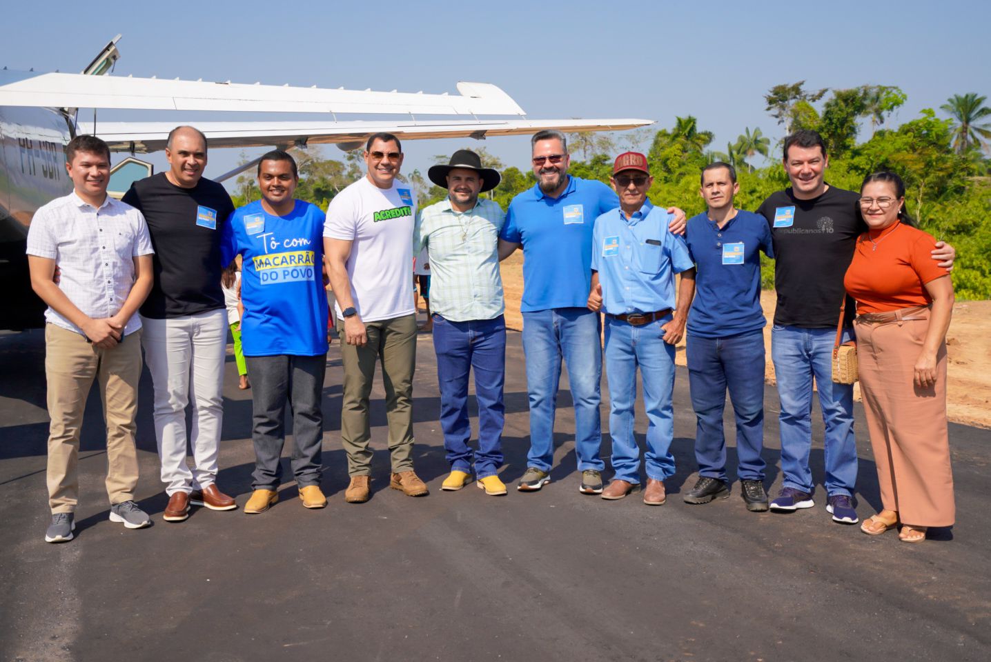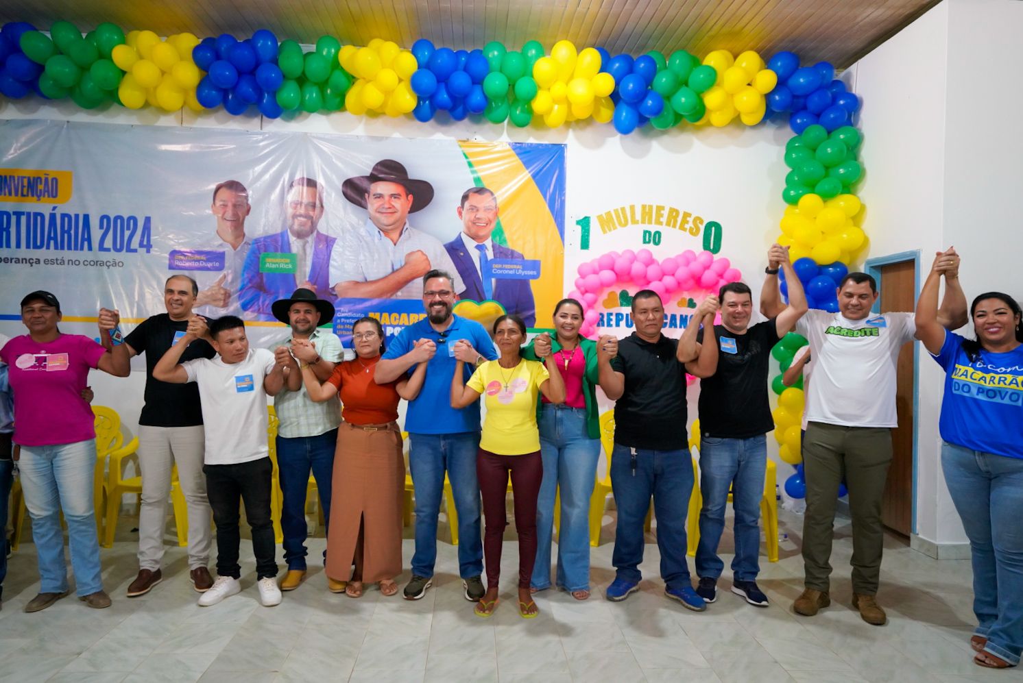A festa começou já na pista de pouso de Manoel Urbano, onde apoiadores de Macarrão se reuniram para receber o presidente estadual do União Brasil, senador Alan Rick, o vice-presidente da sigla deputado federal coronel Ulysses e o presidente estadual do Republicanos, Roberto Duarte. Ao som de fogos, veículos enfileirados seguiram para o antigo prédio da Assembleia de Deus da Avenida Valério Caldas, onde ocorreu a convenção em que Republicanos e União Brasil lançaram o nome do pecuarista, neste sábado, 27.