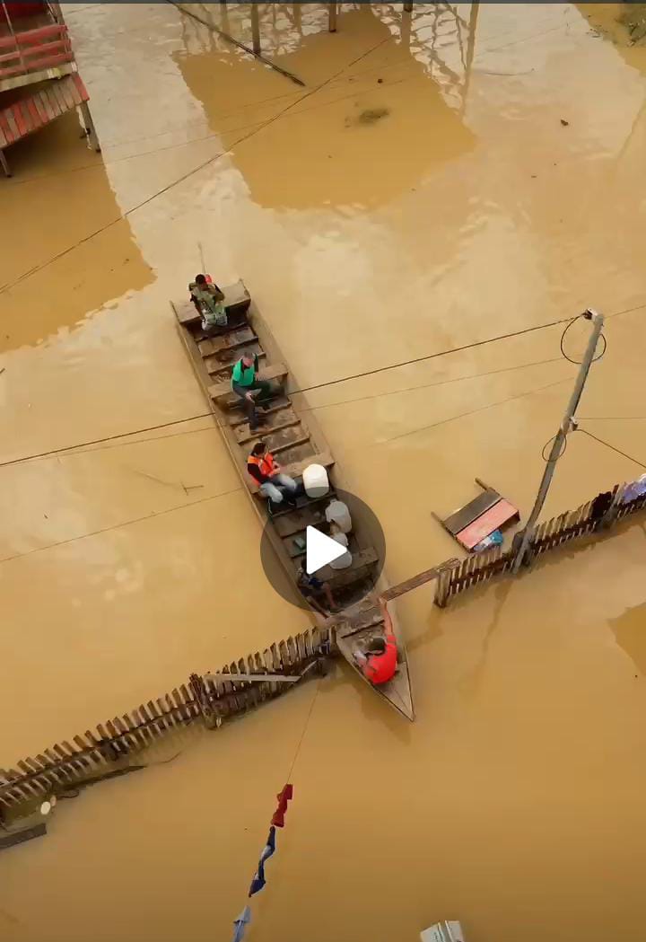 Após seca histórica, Rio Envira transborda e deixa famílias desalojadas na cidade sede do município de Feijó