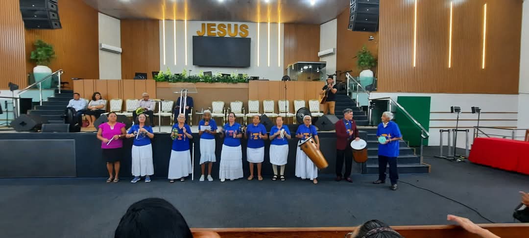 Durante o culto, o destaque foi para dois grupos de louvor compostos exclusivamente por pessoas da terceira idade, que, com seus instrumentos de percussão, louvavam ao Senhor com muita alegria e dedicação.