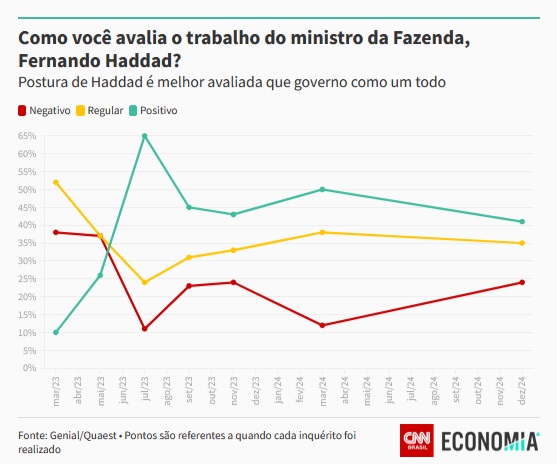 Trabalho do ministro Fernando Haddad é avaliado como positivo por 41%, enquanto 24% consideram negativo