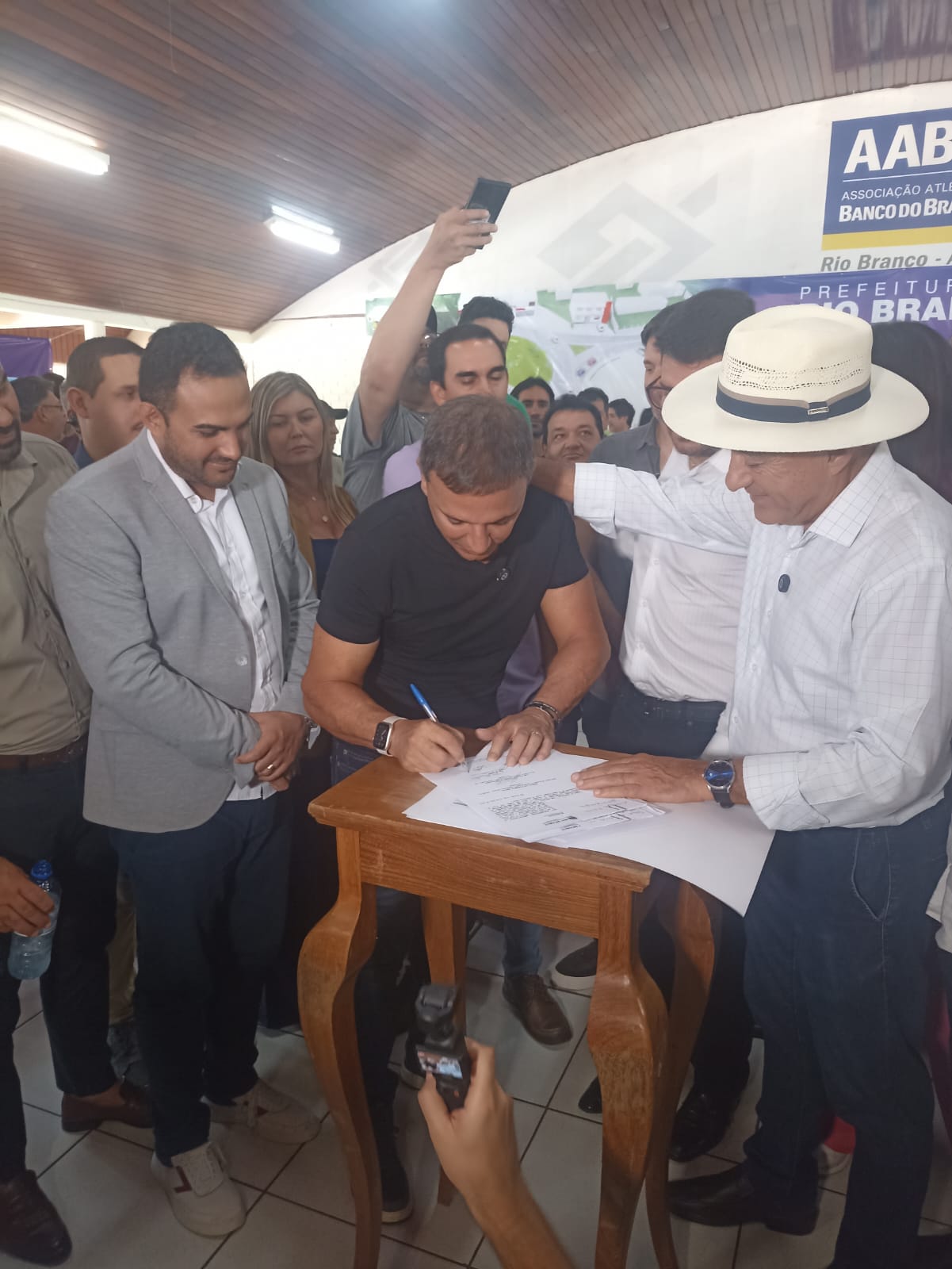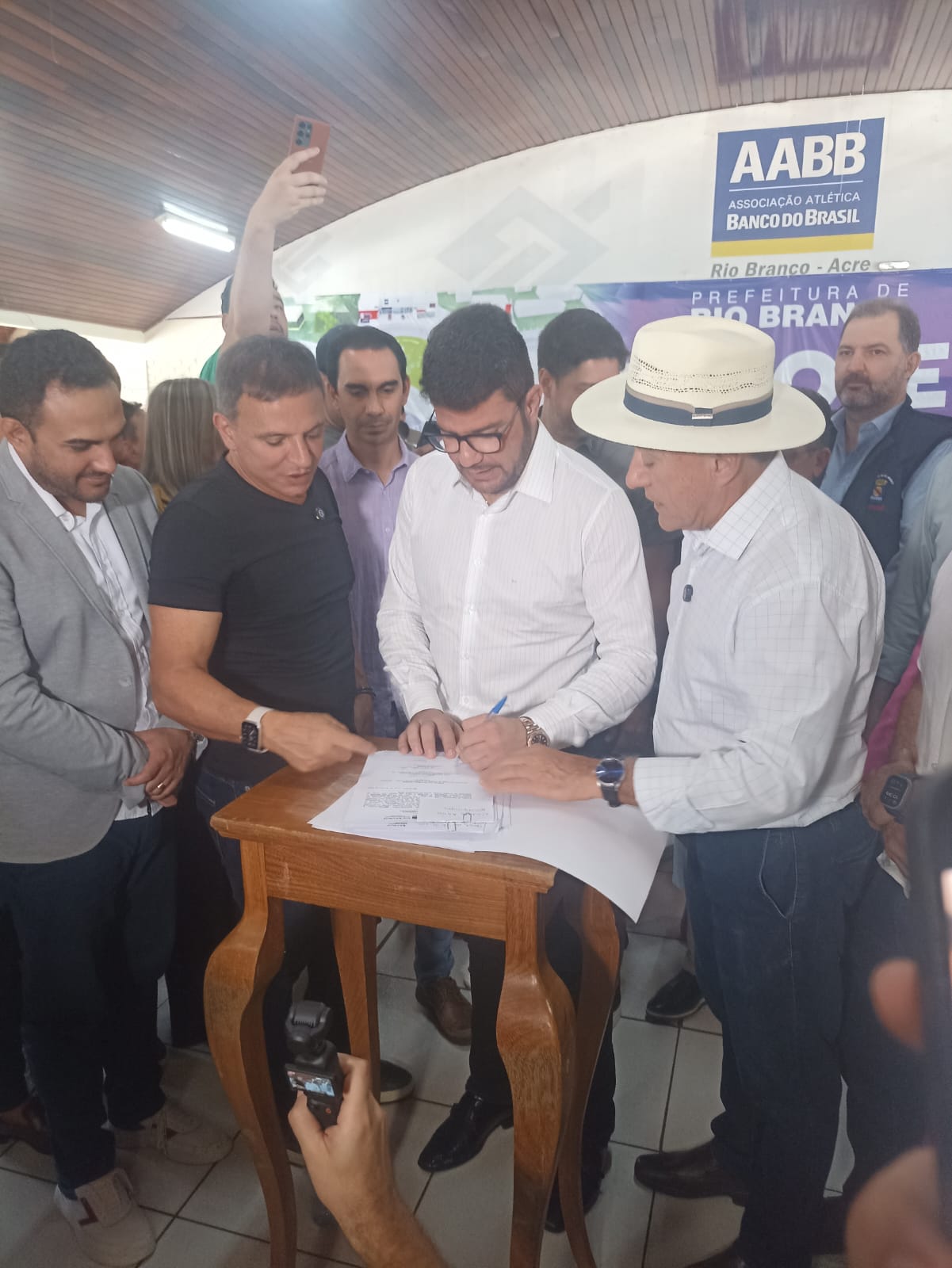 O Prefeito de Rio Branco, Tião Bocalom assinou na manhã desta quarta-feira (3), 12 ordens de serviços para obras que serão realizadas na capital acreana. Cinco ordens de serviços são para a construção de Unidades Básicas de Saúde e outras sete obras de infraestrutura, sendo a maior delas o Viaduto da AABB. O total de recursos que serão aplicados somam mais de R$ 24 milhões. No ato da assinatura esteve presente o governador do Estado Gladson Cameli, representantes da Assembleia legislativa do Acre ( ALEAC) , comunidade em geral e outros segmentos sociais. A principal novidade nesse novo pacote de obras lançado pela prefeitura de Rio Branco sem dúvidas será a construção do viaduto da AABB, isto por que , naquela região por dia circulam mais de 50 mil veículos. O viaduto é um sonho antigo e sua conclusão vai desafogar o fluxo de veículos na Dias Martins.