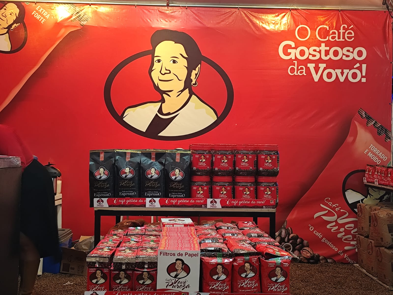 O stand do Café Vovó Pureza proporciona uma experiência única aos frequentadores da feira, oferecendo um ambiente acolhedor para saborear diferentes tipos de café e conhecer mais sobre a trajetória da empresa no estado.