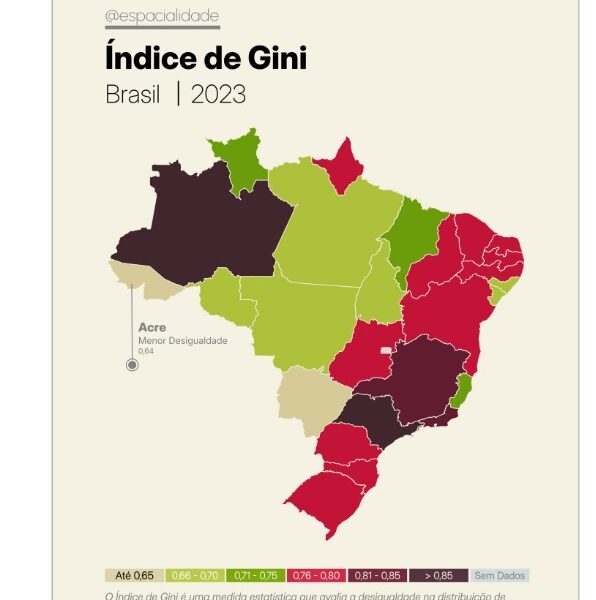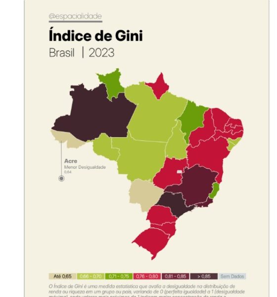 Com a menor concentração da geração de riqueza entre seus municípios em 2023, o Acre aparece no topo do ranking...