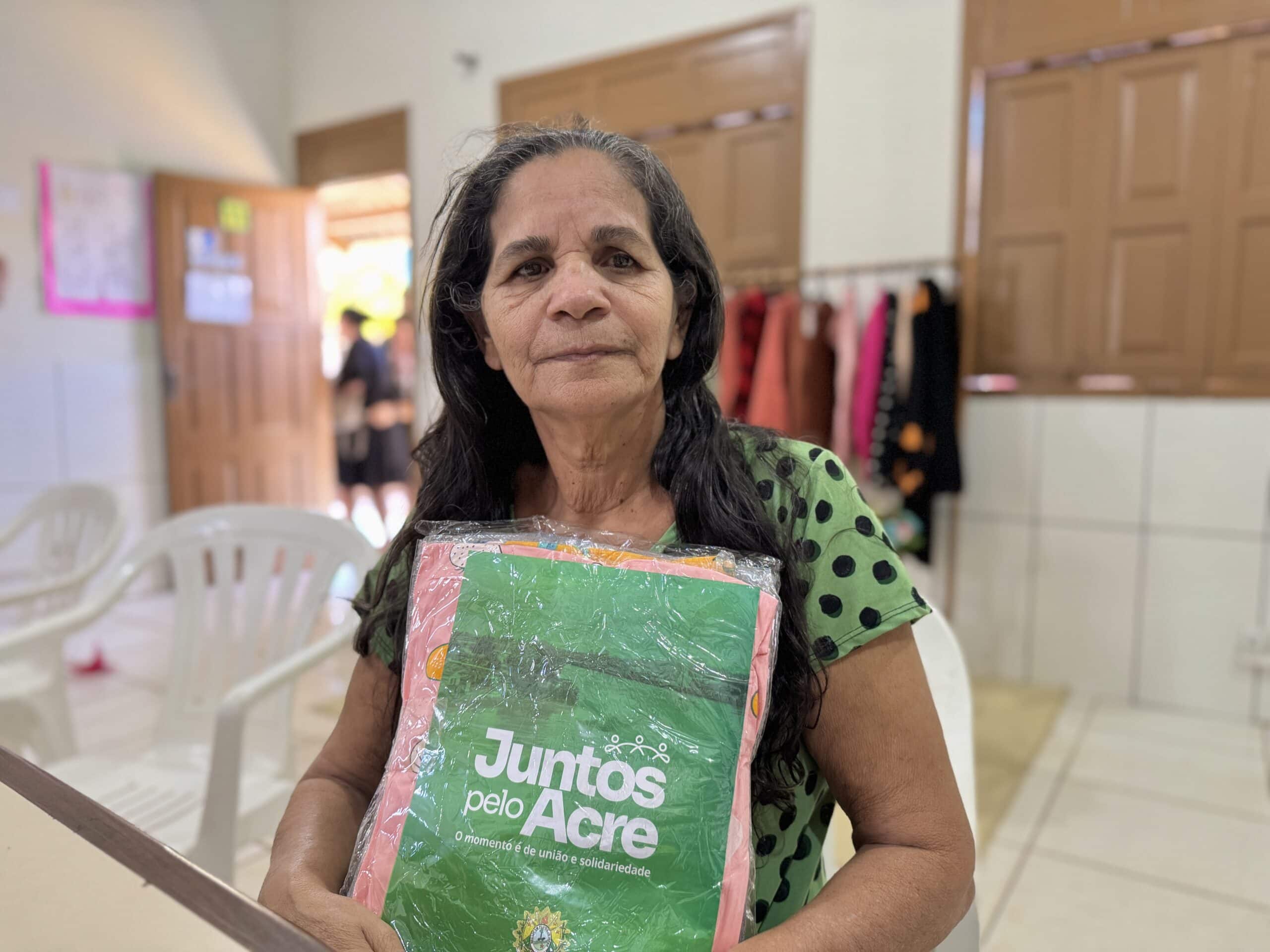 Altina recebendo seu kit de roupas. Foto: Carolina Torres/Secom