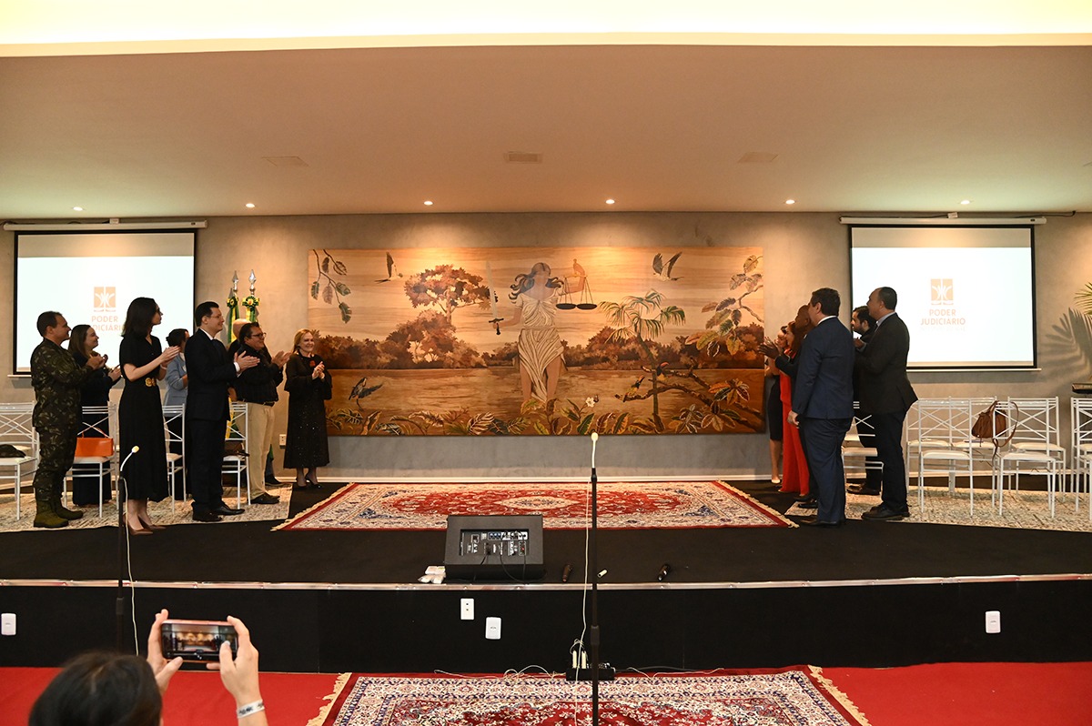 “Por meio de sua técnica refinada em marchetaria, utilizando as cores extraídas de árvores da nossa floresta e visão artística aguçada, o artista nos presenteia com uma representação que traduz força, equilíbrio e esperança, valores essenciais para o Judiciário. Além de embelezar o ambiente, esta criação inspira todos nós a continuar desempenhando, com dedicação, nossa missão de garantir justiça para a paz social”, completou a presidente.