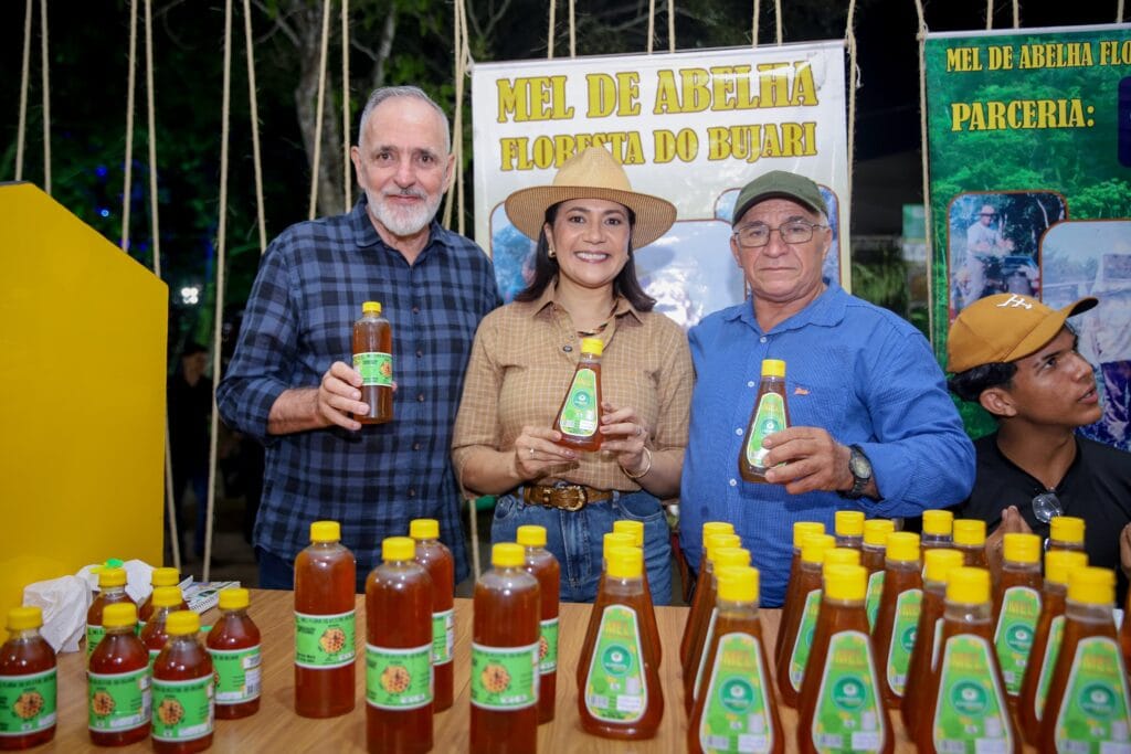 Ao lado do secretário de Estado de Agricultura, Luiz Tchê, Mailza conheceu de perto as cadeias produtivas do cacau, café, mel e o trabalho de centenas de pequenos produtores do estado. No espaço da Agricultura Familiar e Economia Solidária, Mailza aproveitou para jantar e experimentar a culinária local, onde destacou a importância do setor para o desenvolvimento do Acre.