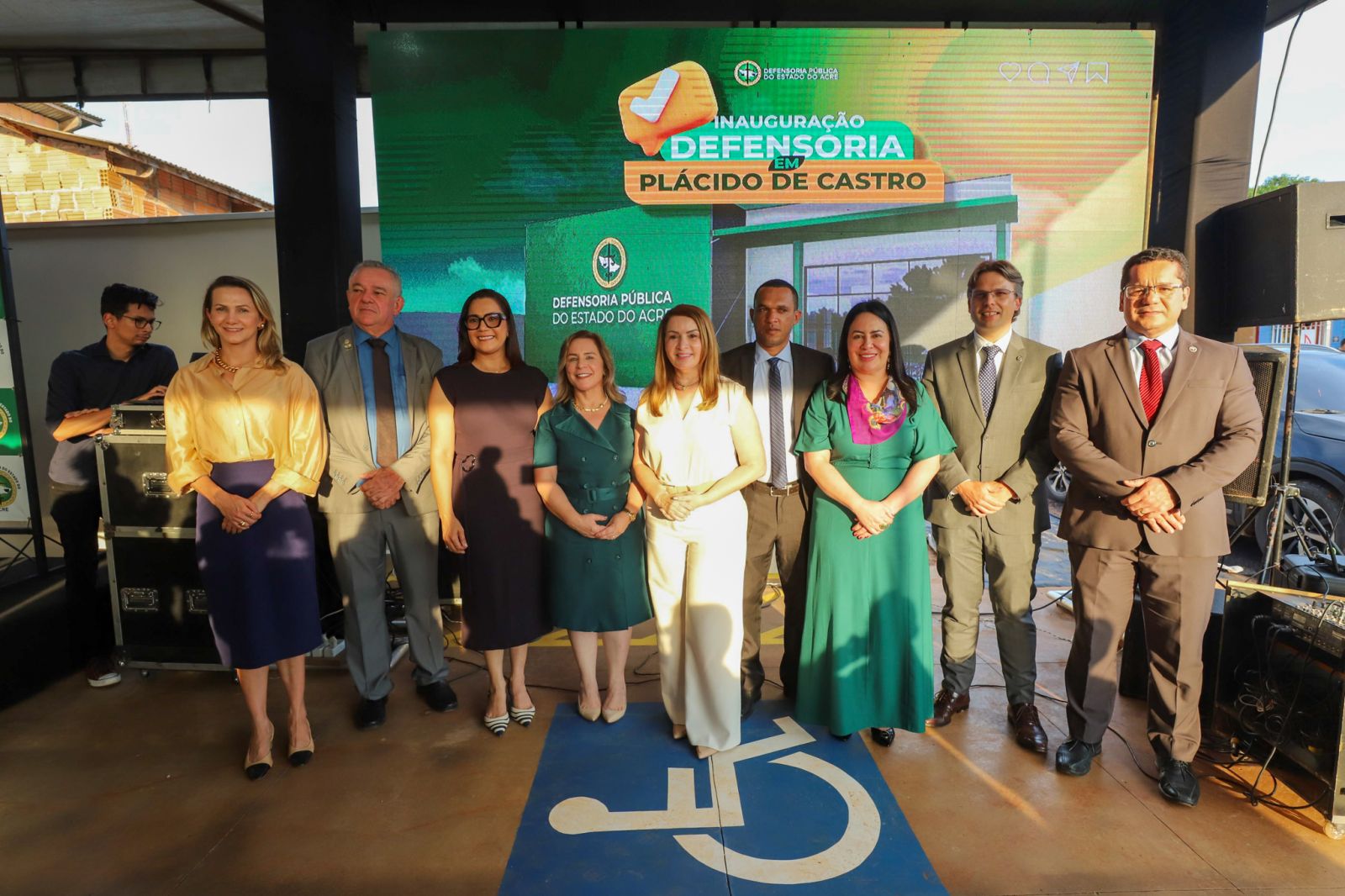 O evento contou com a presença de autoridades de destaque, incluindo a vice-governadora do Acre, Mailza Assis; a defensora-geral do estado, Simone Santiago; a deputada federal Socorro Neri; o prefeito de Plácido de Castro, Camilo da Silva; o juiz diretor do foro da comarca, Mateus Santini; o promotor de justiça Lucivan Nery de Lima; a presidente da Associação das Defensoras e Defensores Públicos do Estado do Acre, Fenísia Araújo da Mota; e o presidente da Câmara de Vereadores do município, Rogério Ribeiro do Nascimento.