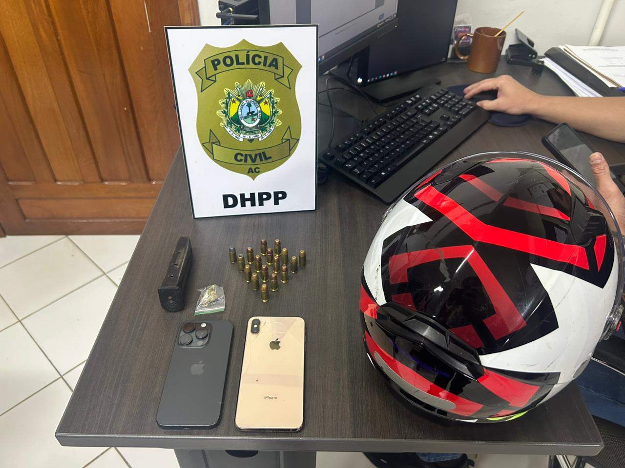 Durante a ação os investigadores encontraram 17 munições e um carregador de pistola.
