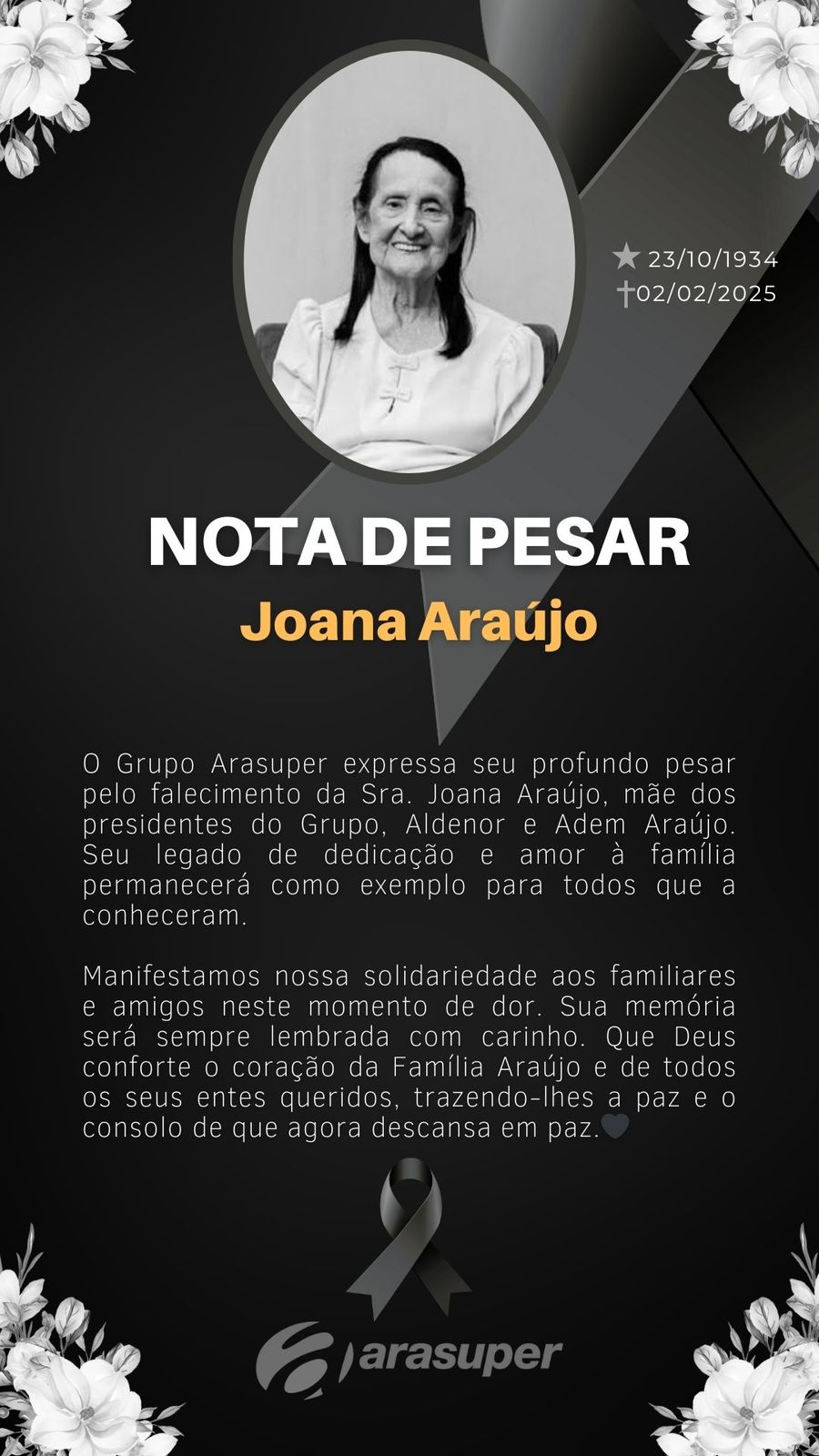 Matriarca de uma grande família, dona Joana ajudou na construção de um dos maiores conglomerados empresariais do Acre, o Grupo Arasuper, que manifestou pesar pelo seu falecimento.