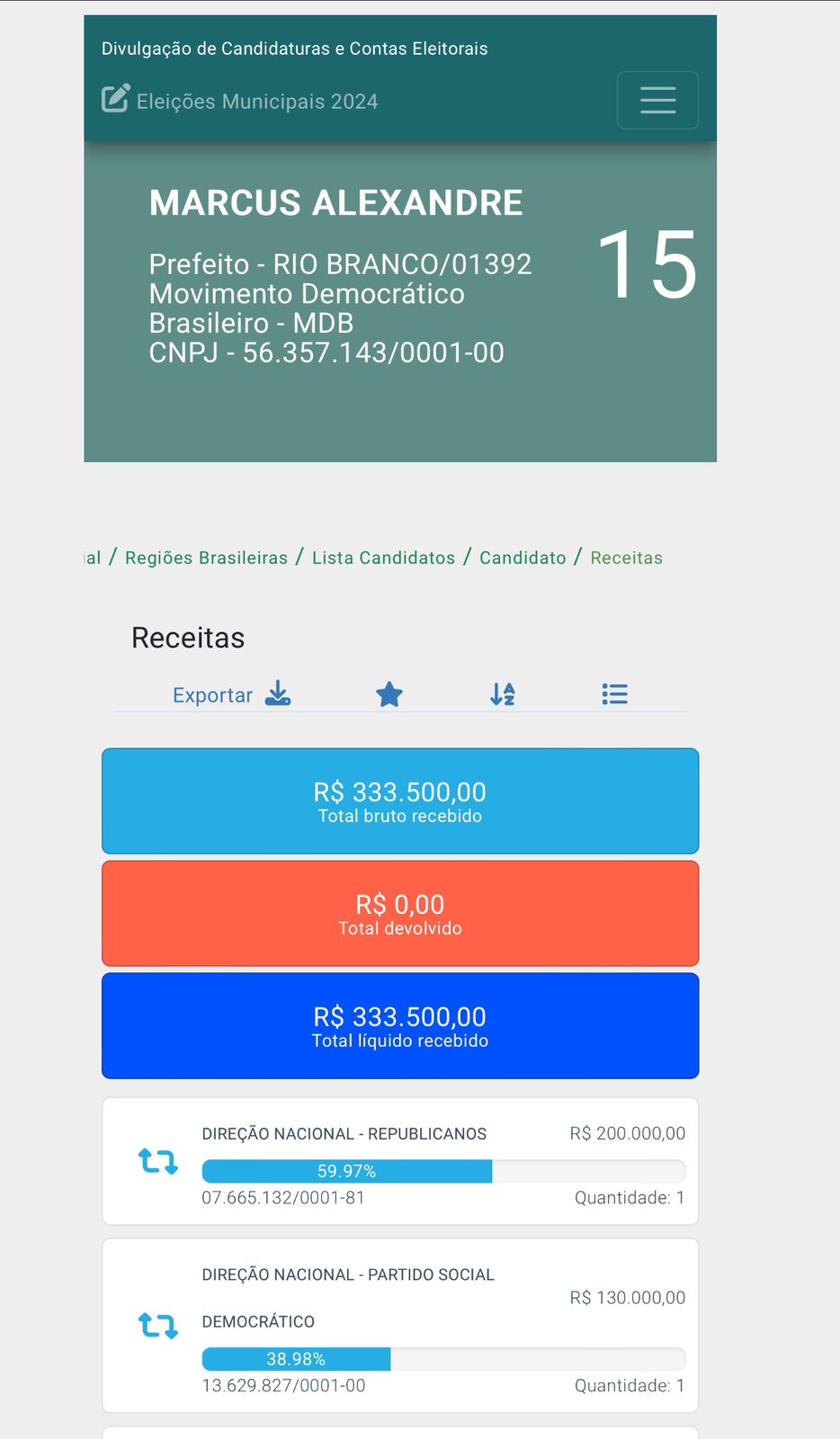 O deputado federal Roberto Duarte (Republicano) figura entre os maiores financiadores da campanha de Marcus Alexandre (MDB) a prefeito de Rio Branco. Pelo menos é o que está registrado nos portais onde as doações são de domínio público. A doação é de R$ 200 mil do partido dele, o Republicano.