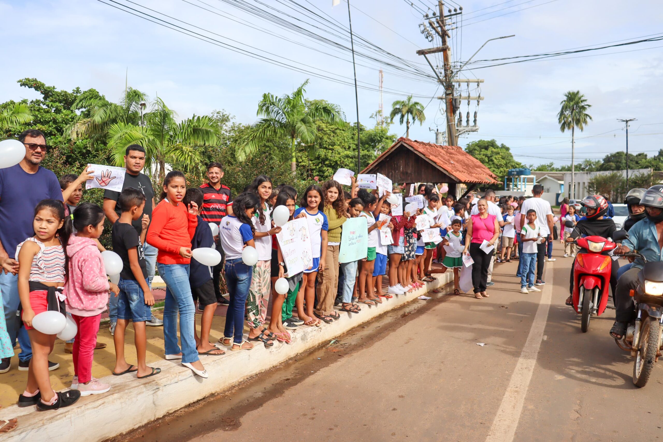 A mobilização contou com a participação de alunos, professores, secretaria de Assistência Social, CRAS, Conselho Tutelar, Conselho Municipal de Educação e SINTEAC.
