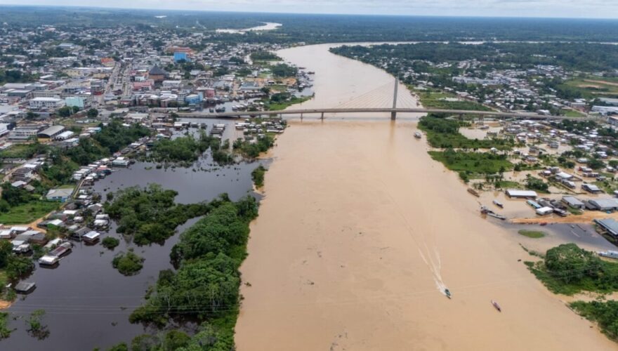 O Rio Juruá alcançou a cota de 13,49 metros em Cruzeiro do Sul nesta segunda-feira (2), provocando alagamentos em bairros urbanos, comunidades rurais e vilas do município. Ao todo, cerca de 6.600 pessoas foram afetadas pela cheia, segundo dados da Defesa Civil Municipal.