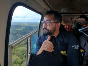 Railson Ferreira – Eu nasci no Seringal Bom Jardim e alguns anos depois viemos para a cidade. Os meus pais compraram uma colônia e passamos a viver dela. Com 14 anos, comecei a trabalhar e aos 16 fui caixa de um supermercado. Aos 17 passei em dois concursos públicos: um para policial militar e o outro para professor. Optei pelo segundo e fiquei seis anos e meio no magistério. Aos 24 anos fui para Rio Branco para ser policial civil e fiquei no órgão por oito anos e meio. Depois conclui a faculdade de Direito em 2012, passei na OAB e me tornei analista no Tribunal de Justiça, onde trabalhei seis anos e meio. Em 2017 fui classificado num concurso para delegado e em 2020 tomei posse aqui em Feijó.