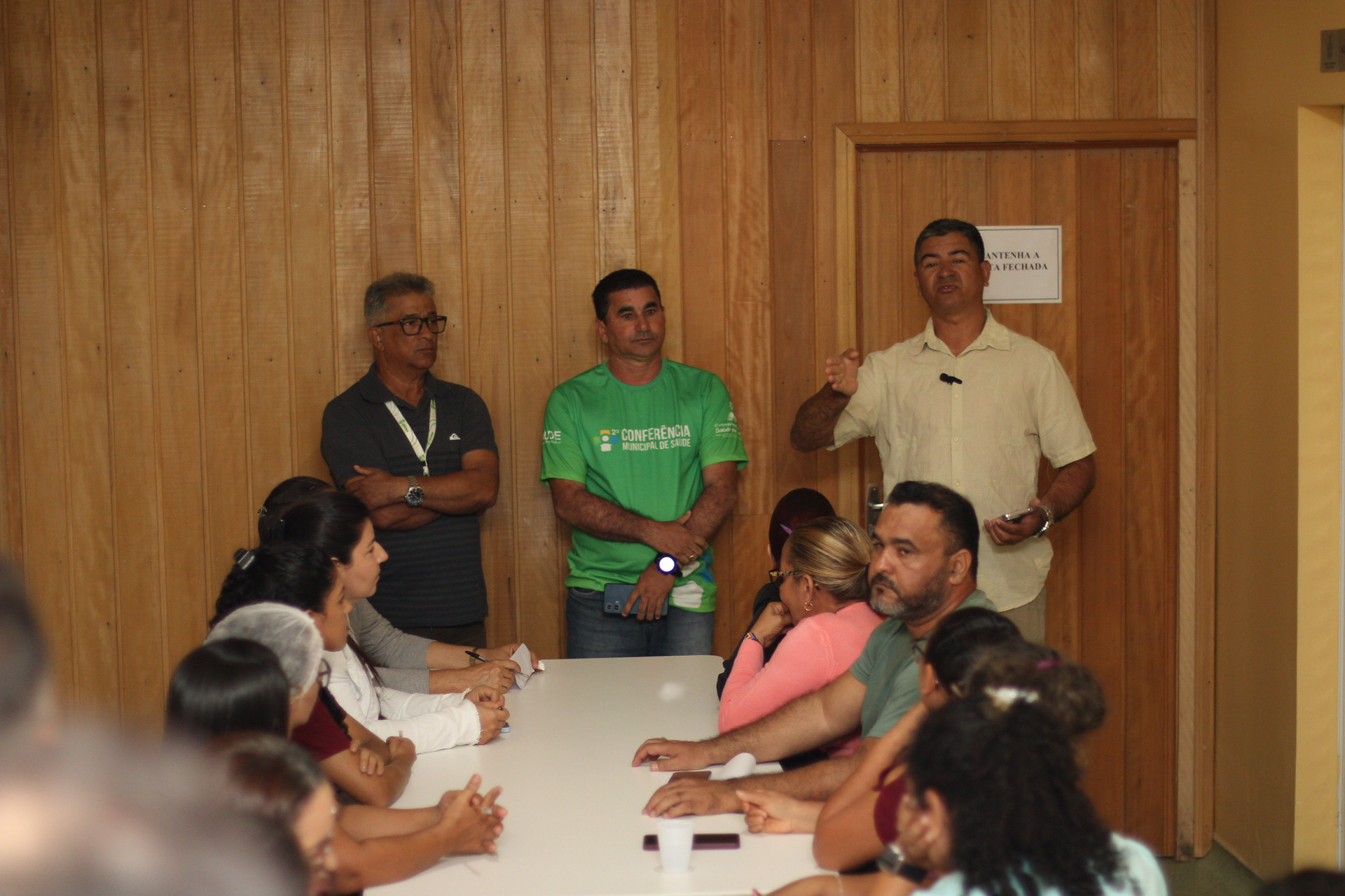 Atendendo a um pedido do prefeito Ivon Rates, que cumpre agenda oficial em Manaus em busca de recursos e melhorias para o município, o prefeito em exercício James França conduziu o encontro e fez a apresentação do novo secretário aos profissionais da saúde. James abriu a reunião reforçando o compromisso da atual gestão com a qualidade no atendimento à população e destacou a importância do trabalho conjunto entre os profissionais.
