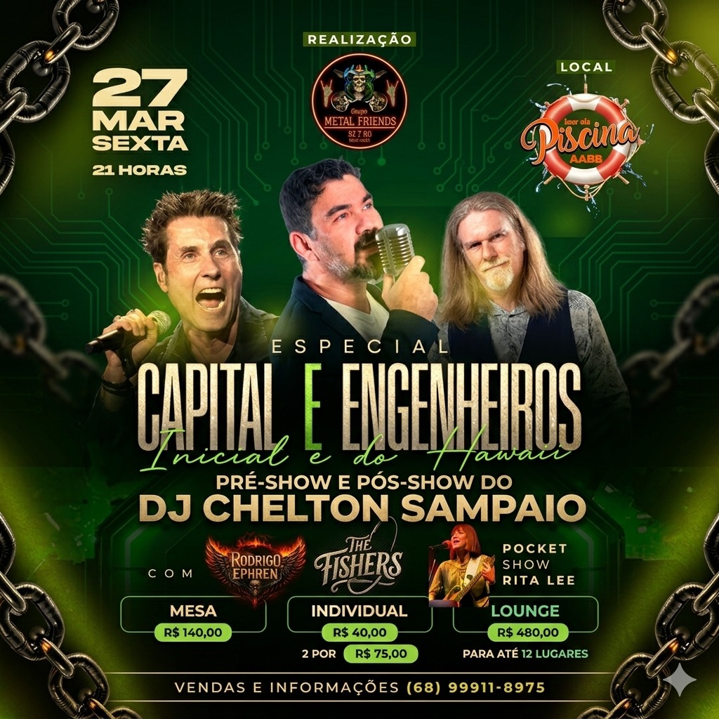 Está tudo pronto para a homenagem em dose dupla das bandas que marcaram época no cenário musical do Brasil: Capital Inicial e Engenheiros do Hawaii, a partir das 21 horas no Bar da Piscina da AABB.
