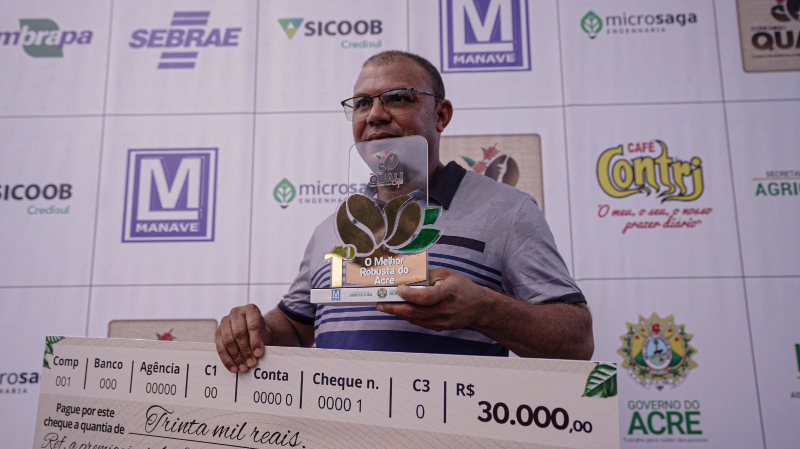 O grande vencedor foi o produtor José Leite de Lima, de Cruzeiro do Sul, que conquistou o primeiro lugar com um café de sabor encorpado e notas frutadas, levando para casa um kit completo de irrigação no valor de R$ 30 mil, patrocinado pela empresa Manave.