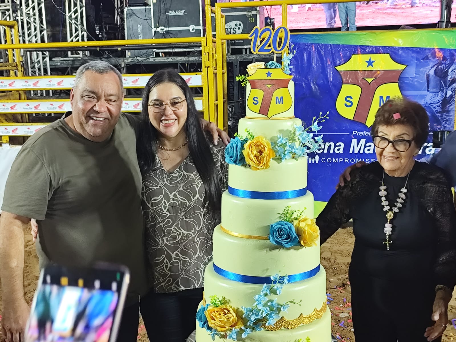Além da música, o público participou de um momento especial com a apresentação de um bolo gigante. A celebração ganhou ainda mais emoção quando todos se uniram para cantar “Parabéns”, homenageando o encerramento de mais uma edição bem-sucedida da ExpoSena e o aniversário de 120 anos da cidade.