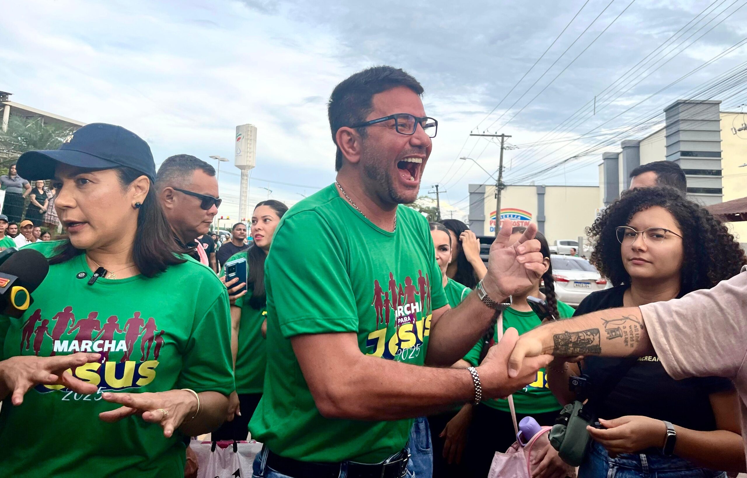 O maior ato da comunidade evangélica do Acre, a Marcha para Jesus, reuniu milhares de fiéis, simpatizantes e autoridades como o governador Gladson Cameli e a vice-governadora Mailza Assis, ambos do PP, além do prefeito Tião Bocalom (PL) e a primeira-dama de Rio Branco, Kélen Nunes, neste sábado, 10, à tarde, no segundo distrito de Rio Branco.