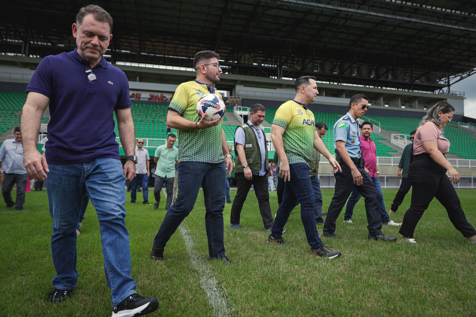 Gladson vai ao Arena da Floresta vê andamento das obras que modernizarão toda a estrutura em 100%