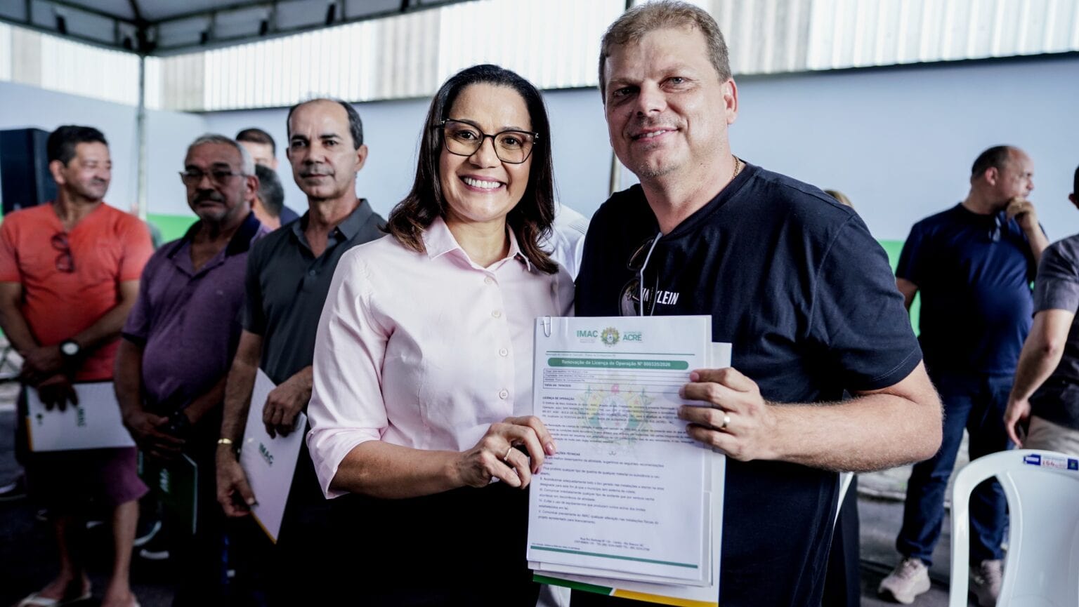 Em solenidade marcada pelo incentivo ao empreendedorismo, fortalecimento da economia regional e compromisso com o desenvolvimento sustentável, o governo do Acre realizou, nesta quinta-feira, 23, em Cruzeiro do Sul, com a presença da governadora Mailza Assis, a cerimônia de entrega de licenças ambientais a empreendedores do Vale do Juruá. A ação, coordenada pelo Instituto de Meio Ambiente do Acre (IMAC), buscou fortalecer a regularização ambiental dos negócios locais, garantir segurança jurídica aos empresários e impulsionar o desenvolvimento econômico sustentável na região.