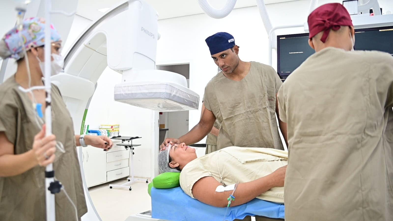 Cirurgia foi conduzida pelos neurocirurgiões Juan Dorado, Luan Messias e Ivan Ortiz, com apoio de uma equipe multiprofissional altamente qualificada. Foto: Agnes Cavalcante/Sesacre