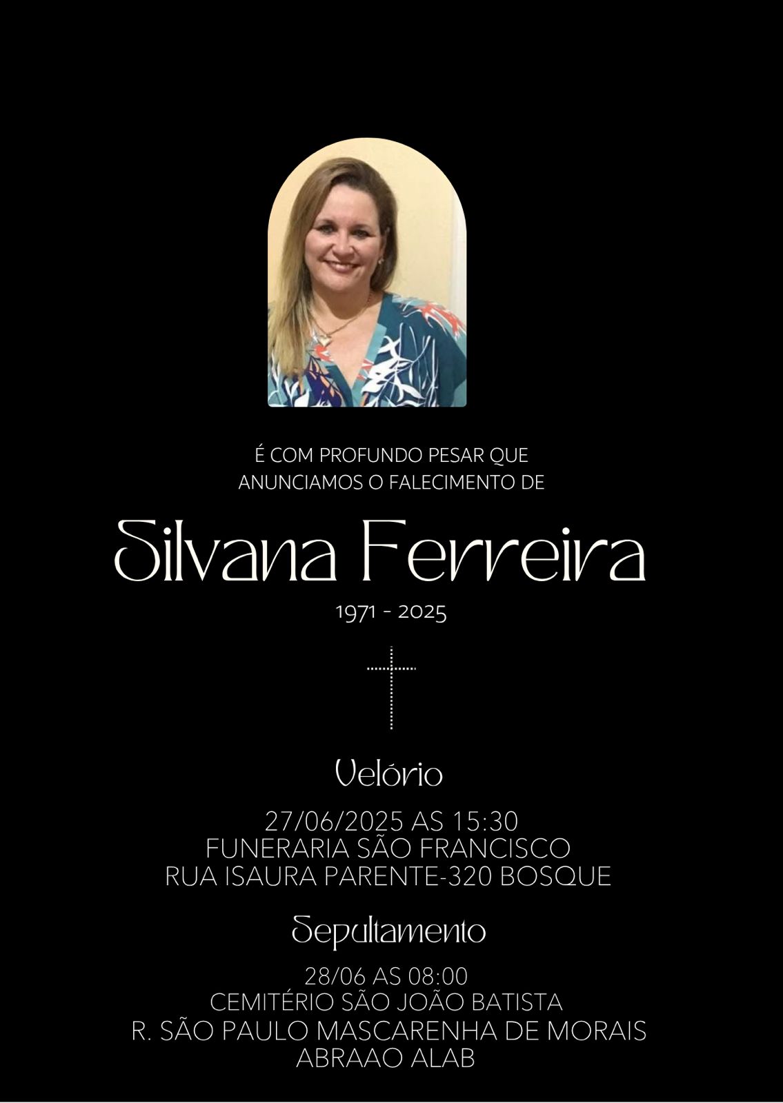 A família Ferreira está de luto. Faleceu na manhã desta quinta-feira (26), na cidade de São Paulo, Silvana Ferreira, 54 anos, vítima de um câncer no intestino.