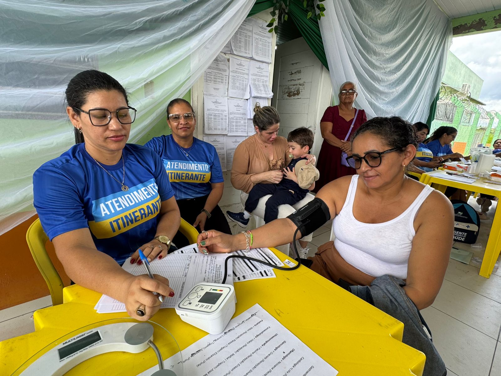 Nesta sexta-feira, 13, a população de Marechal Thaumaturgo recebeu o 1º Saúde Itinerante Especializado, um mutirão de consultas e exames em sete especialidades médicas realizado pela prefeitura com recurso de emenda destinada pelo senador Alan Rick. Os atendimentos ocorreram na Unidade Básica de Saúde Naldir Mariano com a presença do parlamentar que estava acompanhado da esposa Michele e do filho Pedro.