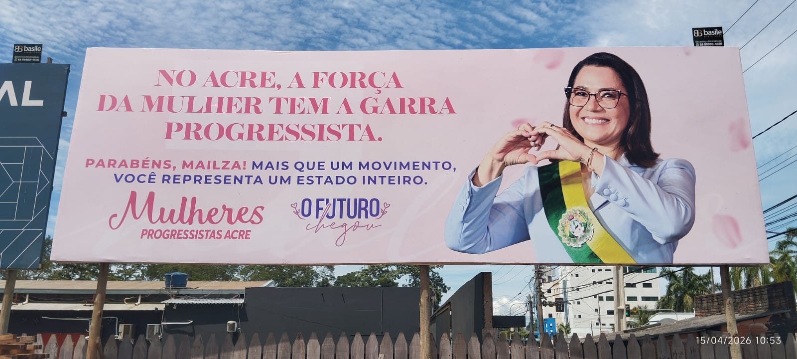 Movimento Mulheres Progressistas espalha outdoors pelo Acre parabenizando a chegada de Mailza ao Governo