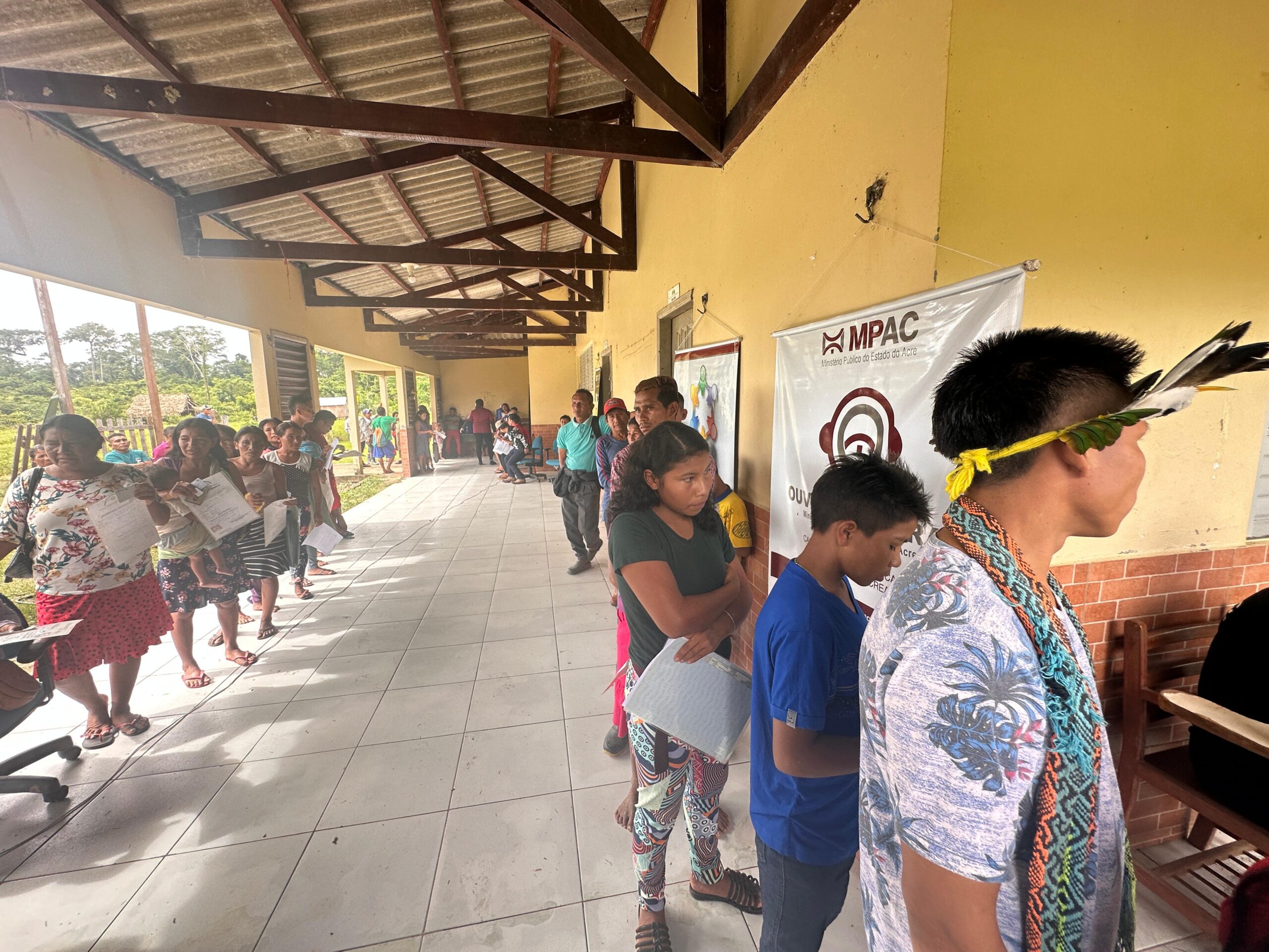 Nesta sexta-feira, 19 de abril, Dia dos Povos Indígenas, o Ministério Público do Estado do Acre (MPAC) deu início à edição do programa MP na Comunidade na Aldeia Boaçu, em Manoel Urbano. O projeto continua neste sábado, 20, e conta com a parceria da Fundação Nacional dos Povos Indígenas (Funai), do Tribunal de Justiça do Acre (TJAC) e do Instituto de Identificação Raimundo Hermínio de Melo.