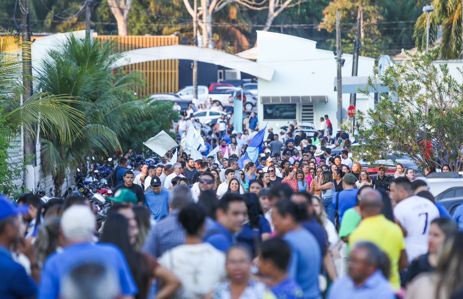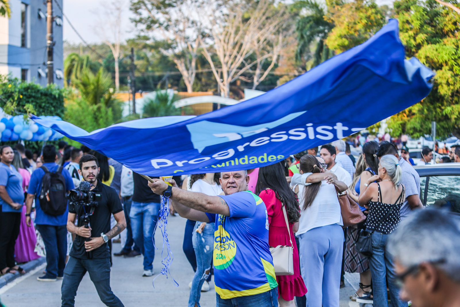 Momentos antes do início da convenção partidária que marca o lançamento da candidatura de Tião Bocalom e Alysson Bestene para prefeito e vice-prefeito de Rio Branco, que acontece no Ginásio do Sesc, fotos mostram uma multidão se encaminhando para o evento.