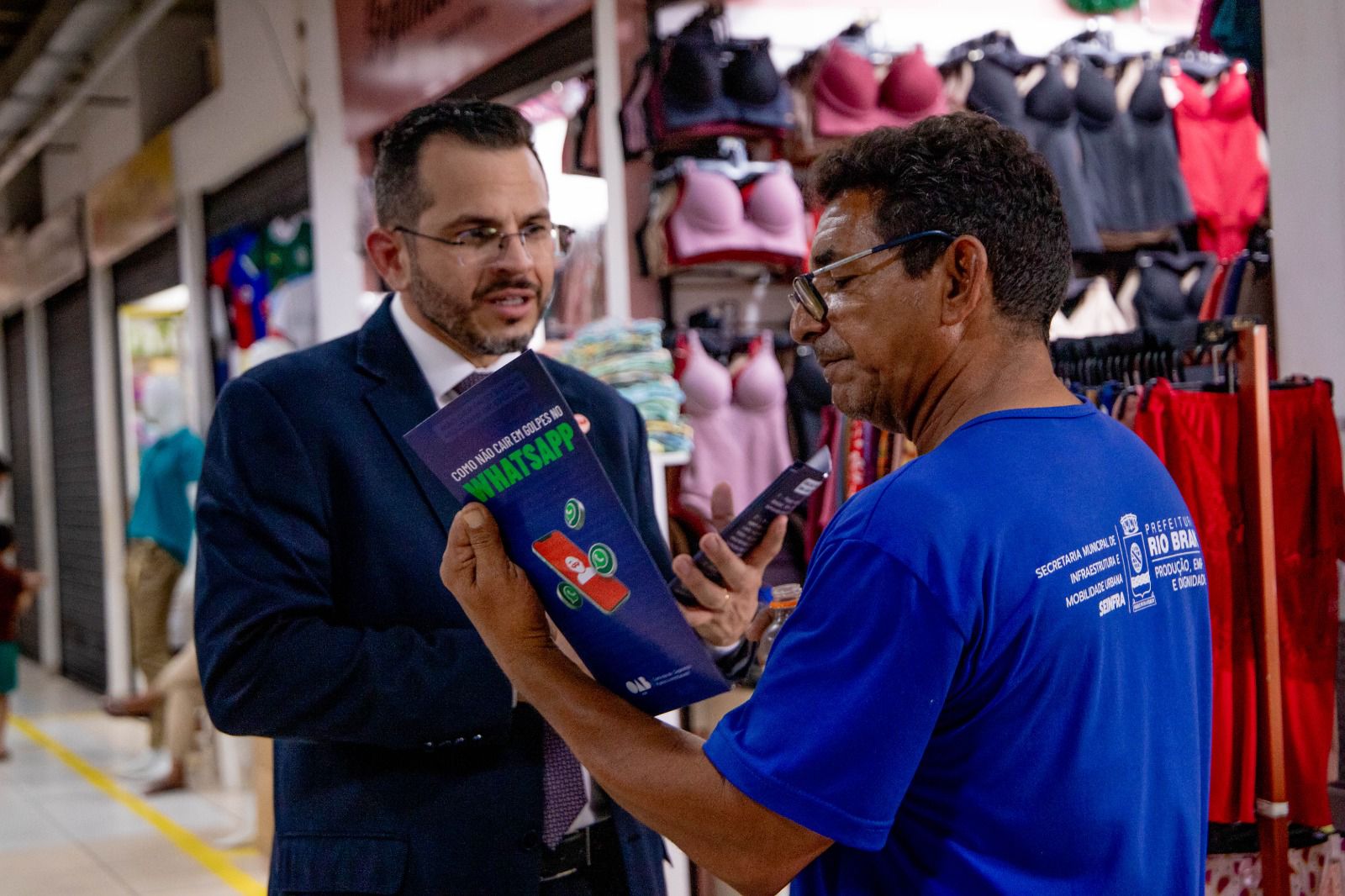 OAB/AC realiza panfletagem no centro de Rio Branco sobre prevenção a golpes via WhatsApp