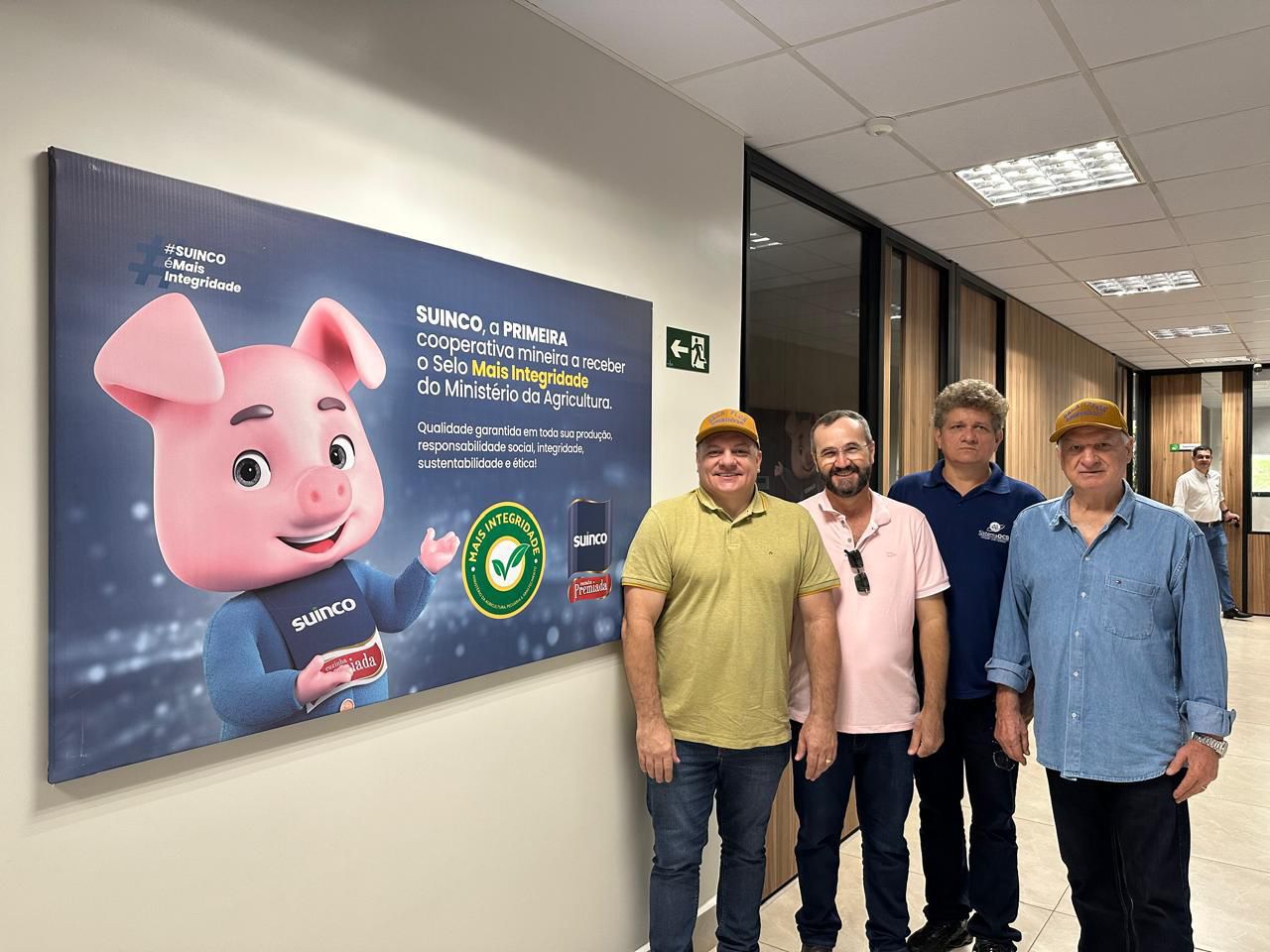 Comitiva composta por membros da Cooperativa Agropecuária do Regional do Alto Acre (Coopeagro), Fernando Lage, Mário Maffi e Lincoln da Silva, e o presidente do Sistema OCB no Acre, Valdemiro Rocha, realizaram de 01 a 04 de dezembro, visita técnica à Suinco, a maior cooperativa processadora de carne suína do estado de Minas Gerais e referência nacional na tecnologia e processamento de carnes e derivados. A visita visa a aquisição de conhecimentos técnicos e gerenciais na área.