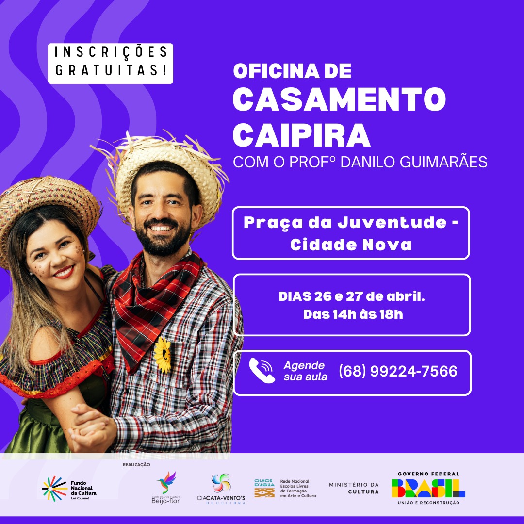 A Escola de Arte e Cultura Beija-Flor e a Cia Cata-Ventos de Cultura promovem uma série de oficinas culturais durante o mês de abril, oferecendo oportunidades de aprendizado e aprimoramento em diversas áreas artísticas. As atividades incluem tecido acrobático, economia criativa, casamento caipira, danças urbanas e empreendedorismo criativo.