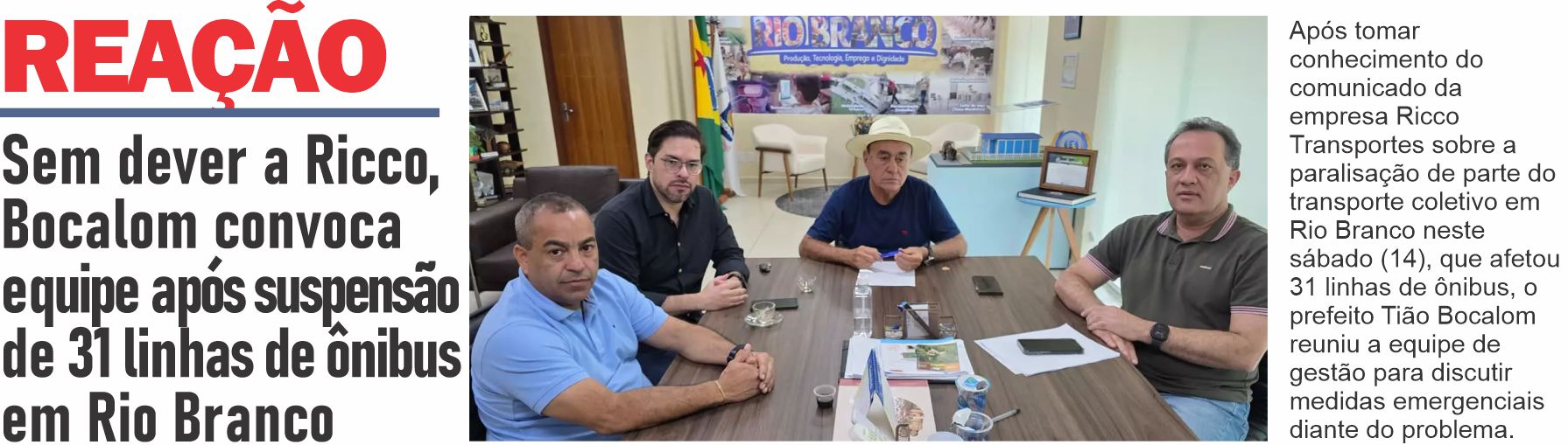 Após tomar conhecimento do comunicado da empresa Ricco Transportes sobre a paralisação de parte do transporte coletivo em Rio Branco...