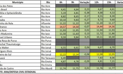 Dados da Defesa Civil mostram que o manancial continua baixando em Rio Branco; monitoramento segue rigoroso para garantir a segurança...