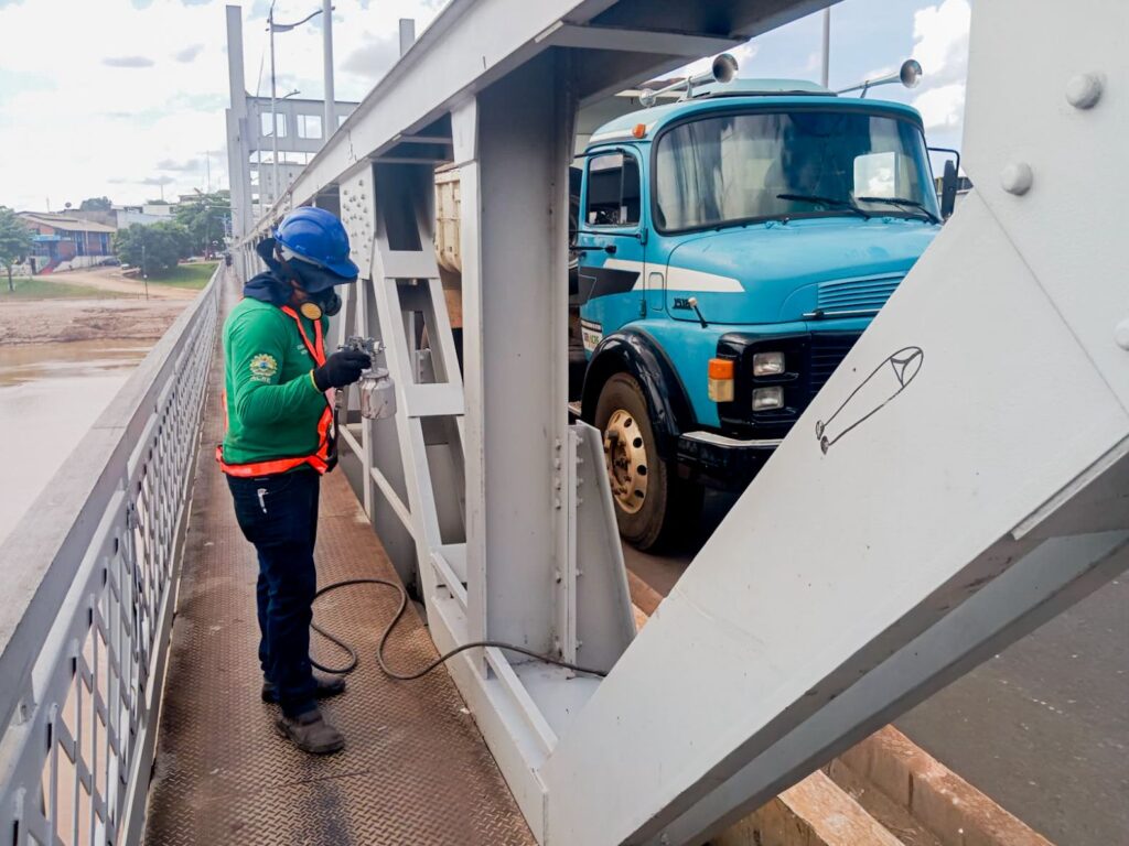 Ponte Juscelino Kubitschek, em Rio Branco, passa por limpeza e pintura coordenadas pelo Deracre