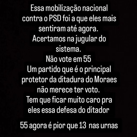 Encabeçada pelo deputado federal Gustavo Gaya (PL/GO), o Partido Social democrata (PSD), que no Acre é liderada pelo senador Sérgio Petecão, e tem dentro de seus quadros Marfisa Galvão, candidato à vice-prefeita na chapa de Marcus Alexandre (MDB), vem sendo alvo de uma campanha nacional puxada pela Direita por, segundo seus acusadores, dar sustentação aos arroubos ditatoriais do STF, sobretudo em relação às iniciativas do ministro Alexandre de Moraes. A campanha pede que os brasileiros não votem em candidatos do partido.