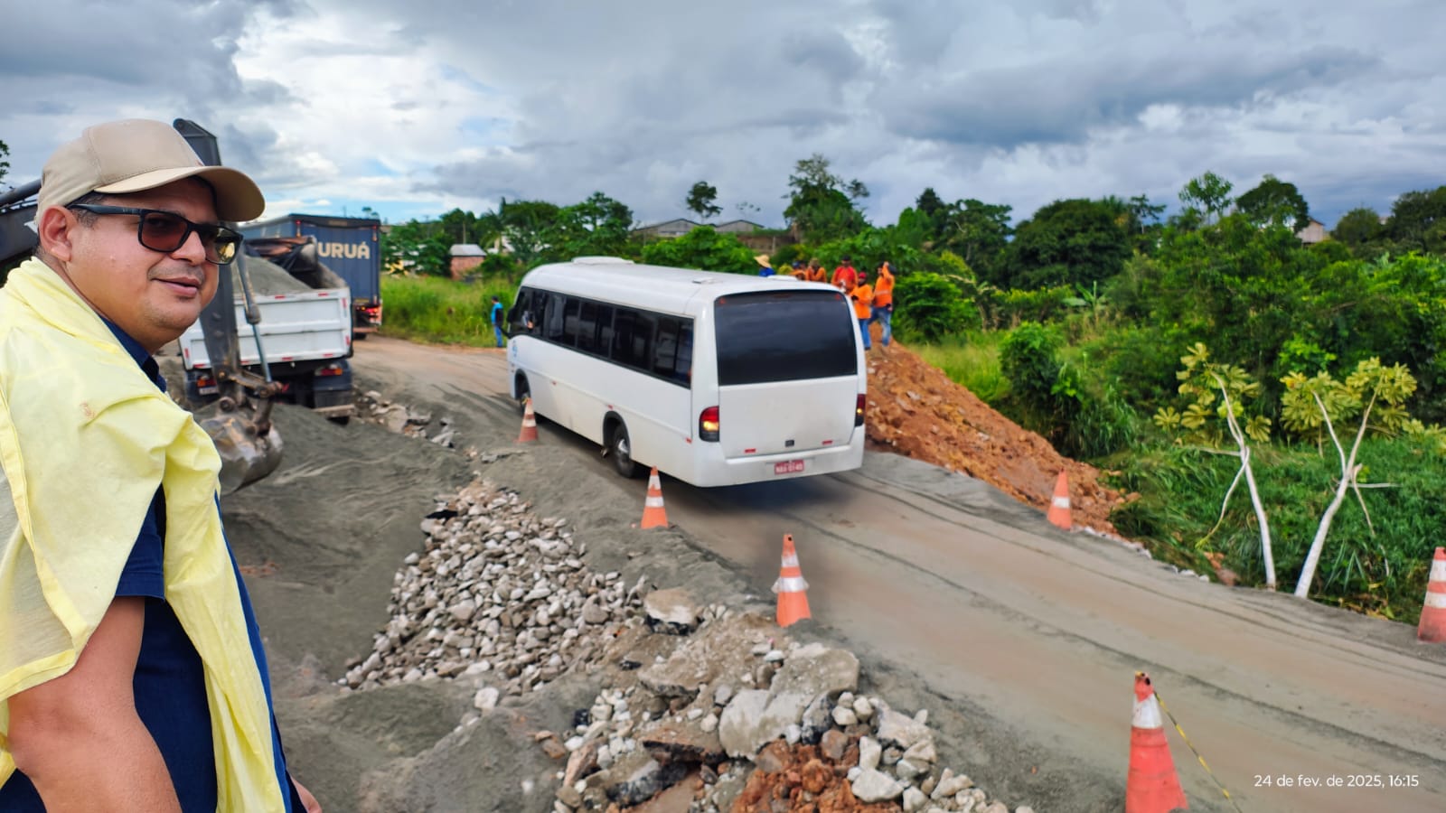 Ricardo Araújo se entusiasma com operação de guerra realizada por equipe do DNIT na reabertura da BR-364 em Feijó: “Segue padrão”