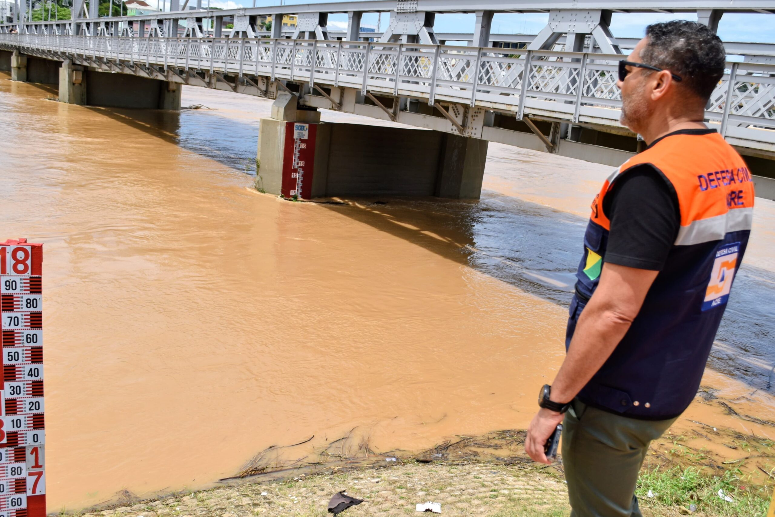 “Estamos em monitoramento permanente do Rio Acre. O nível chegou a 13,27 metros e permanece muito próximo da cota de alerta (13,50 m). Nossas equipes seguem em campo, acompanhando áreas ribeirinhas e bairros mais vulneráveis, prontas para agir caso haja nova elevação ou necessidade de medidas preventivas”, afirmou Cláudio Falcão, coordenador da Defesa Civil de Rio Branco.