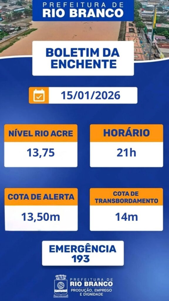 Nível do Rio Acre no dia 15 de janeiro de 2026