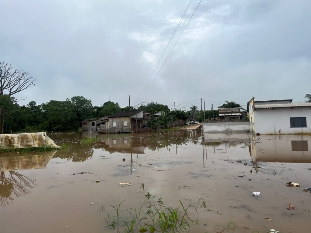Rio Iaco ultrapassa cota de transbordamento, alaga áreas de Sena Madureira nesta sexta (30) e 30 famílias estão desabrigadas