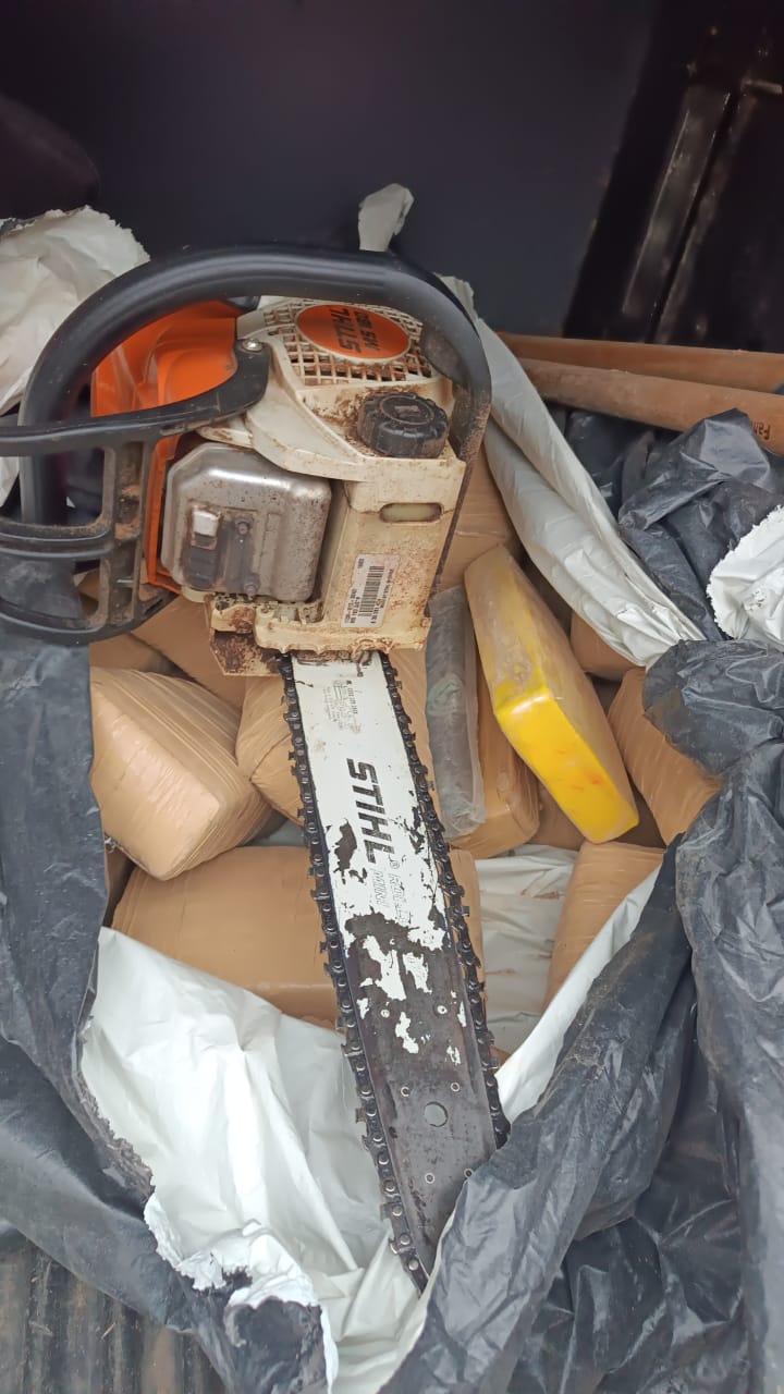 Os policiais perguntaram acerca da origem do ilícito ao homem, que declarou ser apenas o transportador do material e que o restante estava escondido em um ramal, localizado na estrada de Porto Acre. O sujeito indicou o local onde estaria o restante dos entorpecentes, que foram localizados enterrados ao lado de uma casa abandonada, numa área rural. Além da droga, os militares apreenderam uma cavadeira (boca de lobo) e uma motosserra.