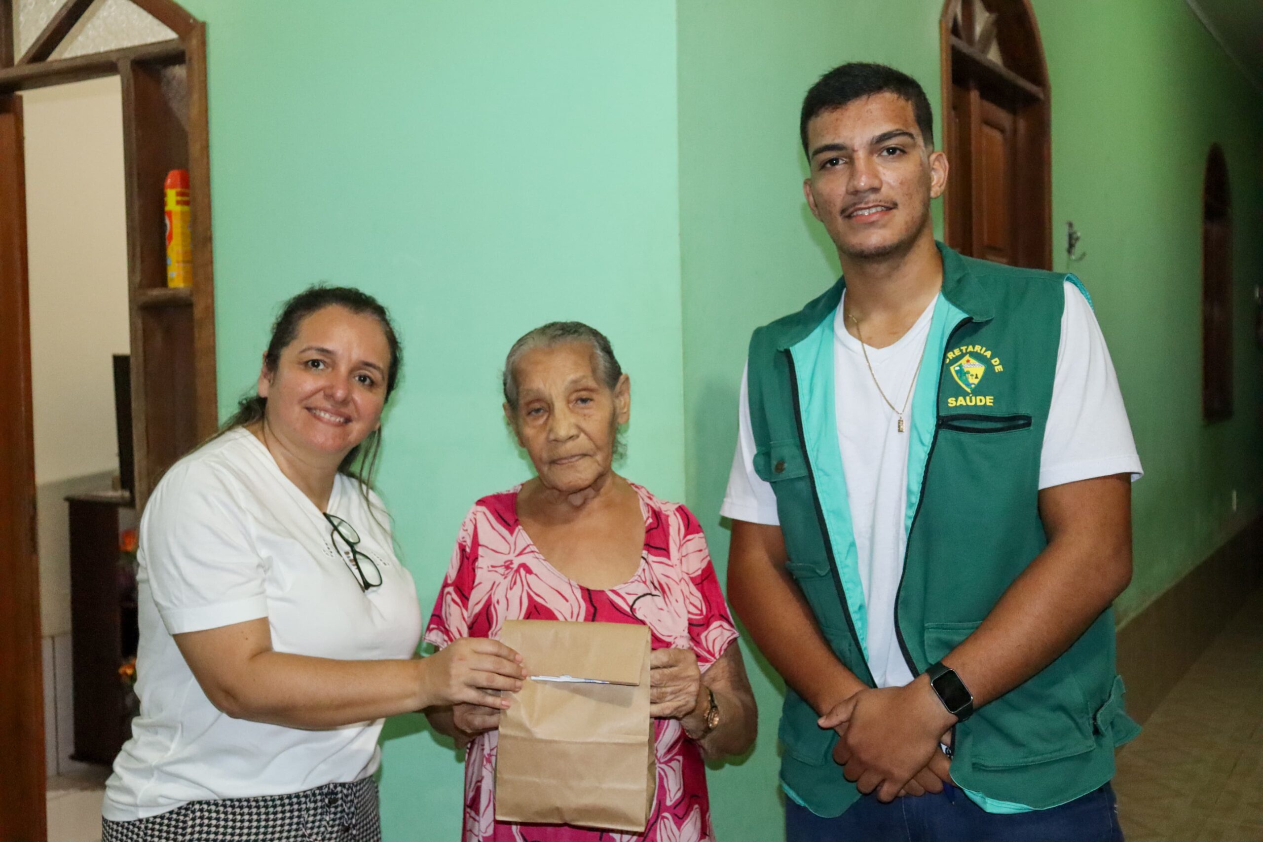 Dona Dalira Guimarães de 91 anos, moradora do bairro Marcos Galvão foi a primeira paciente atendida pelo programa a receber a medicação para sua saúde em casa.