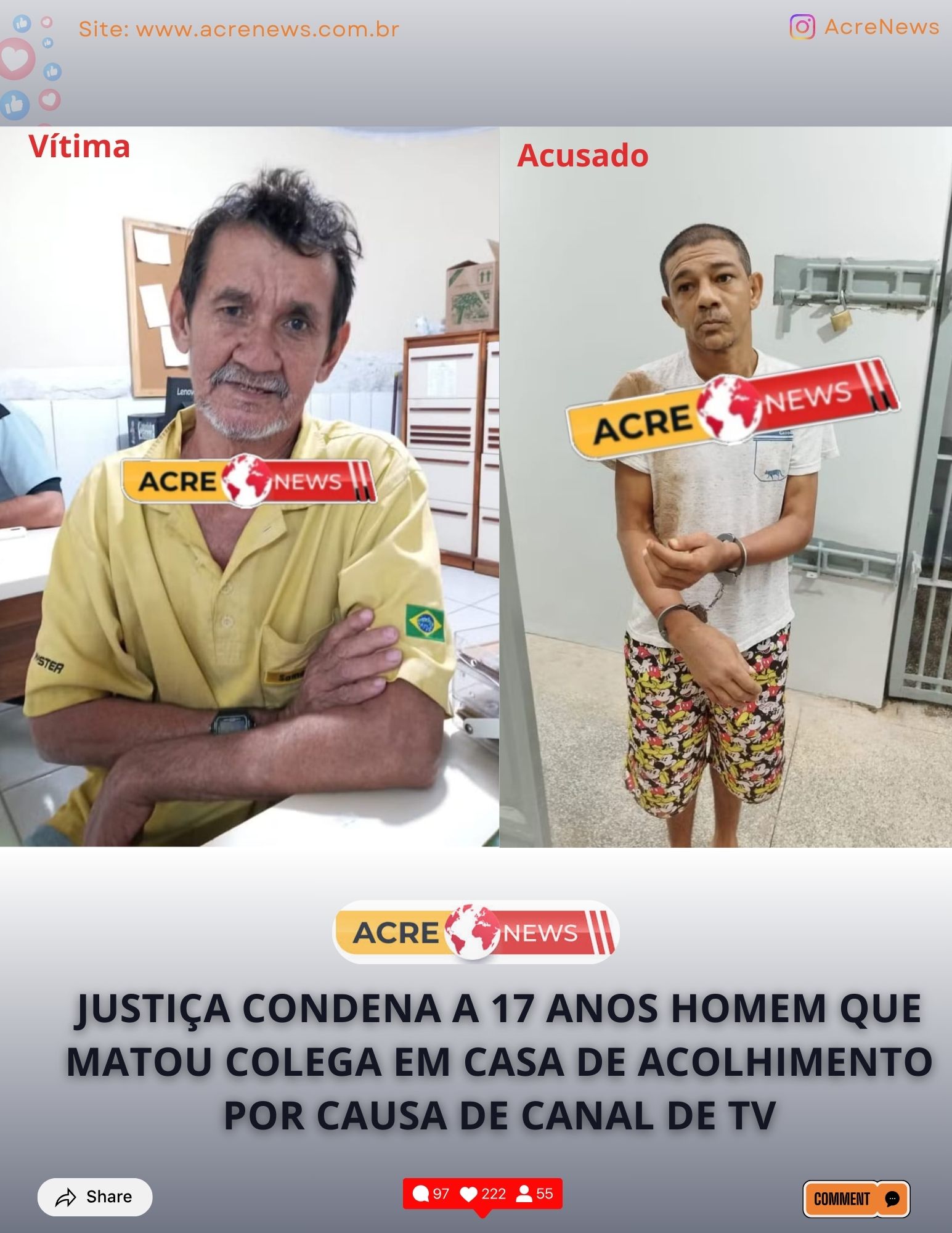 O crime aconteceu na manhã de 22 de setembro do ano passado, no interior da casa de acolhimento Monte Sinai, localizada no bairro Santa Helena, no Segundo Distrito de Rio Branco. Réu e vítima eram internos da instituição e iniciaram uma discussão por conta da escolha do canal de televisão. Durante o desentendimento, Francisco Erisvaldo armou-se com uma faca de cozinha e desferiu os golpes fatais contra Davi.