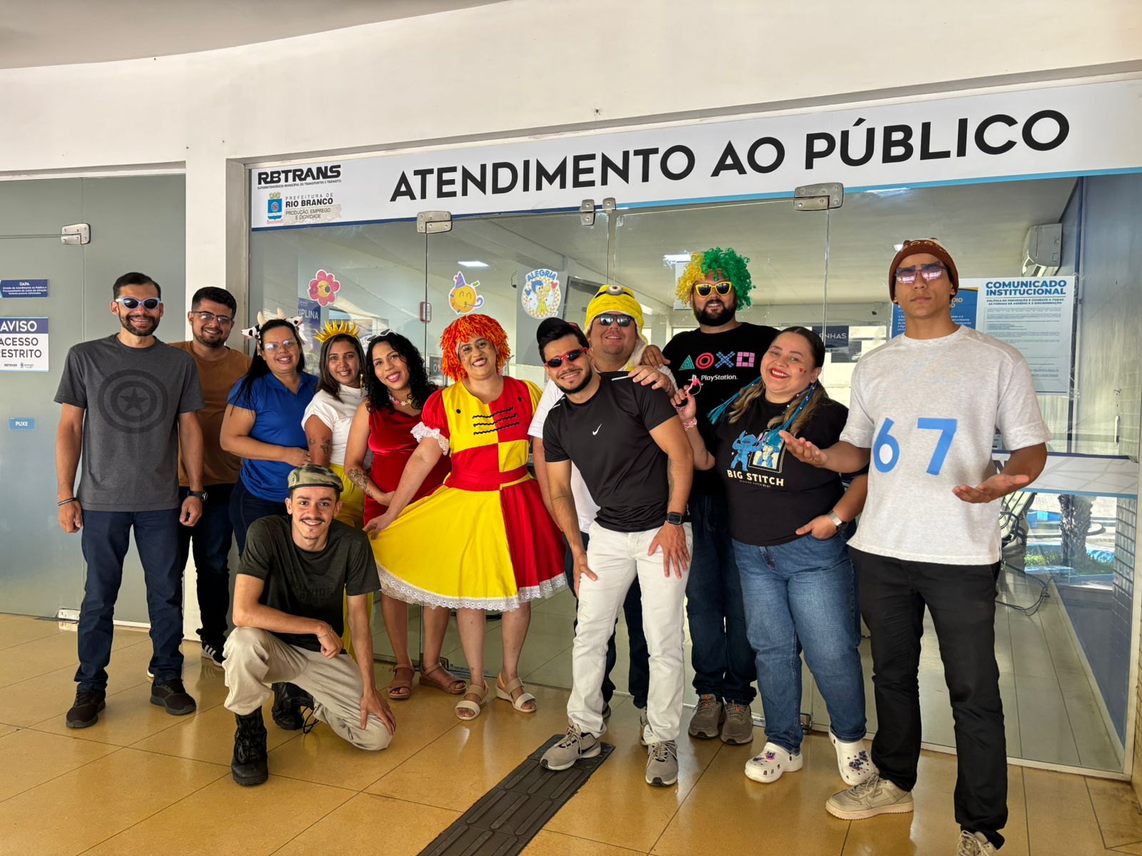 Rio Branco, Acre – Quem procurou a RBTRANS nesta sexta-feira (20) encontrou um cenário bem diferente do habitual rigor das repartições públicas. Em uma iniciativa da Coordenação Geral da DAPA (Divisão de Atendimento ao Público e Processamento de Autos), os servidores trocaram o uniforme por fantasias, perucas coloridas e muita animação para celebrar o “Dia da Alegria”.